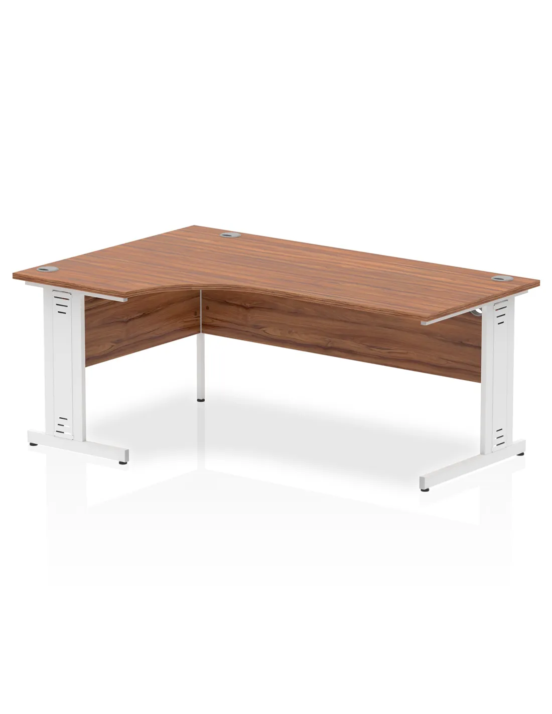 Dynamic Impulse 1800mm Right Crescent Office Desk Walnut Top White Cable Managed Leg