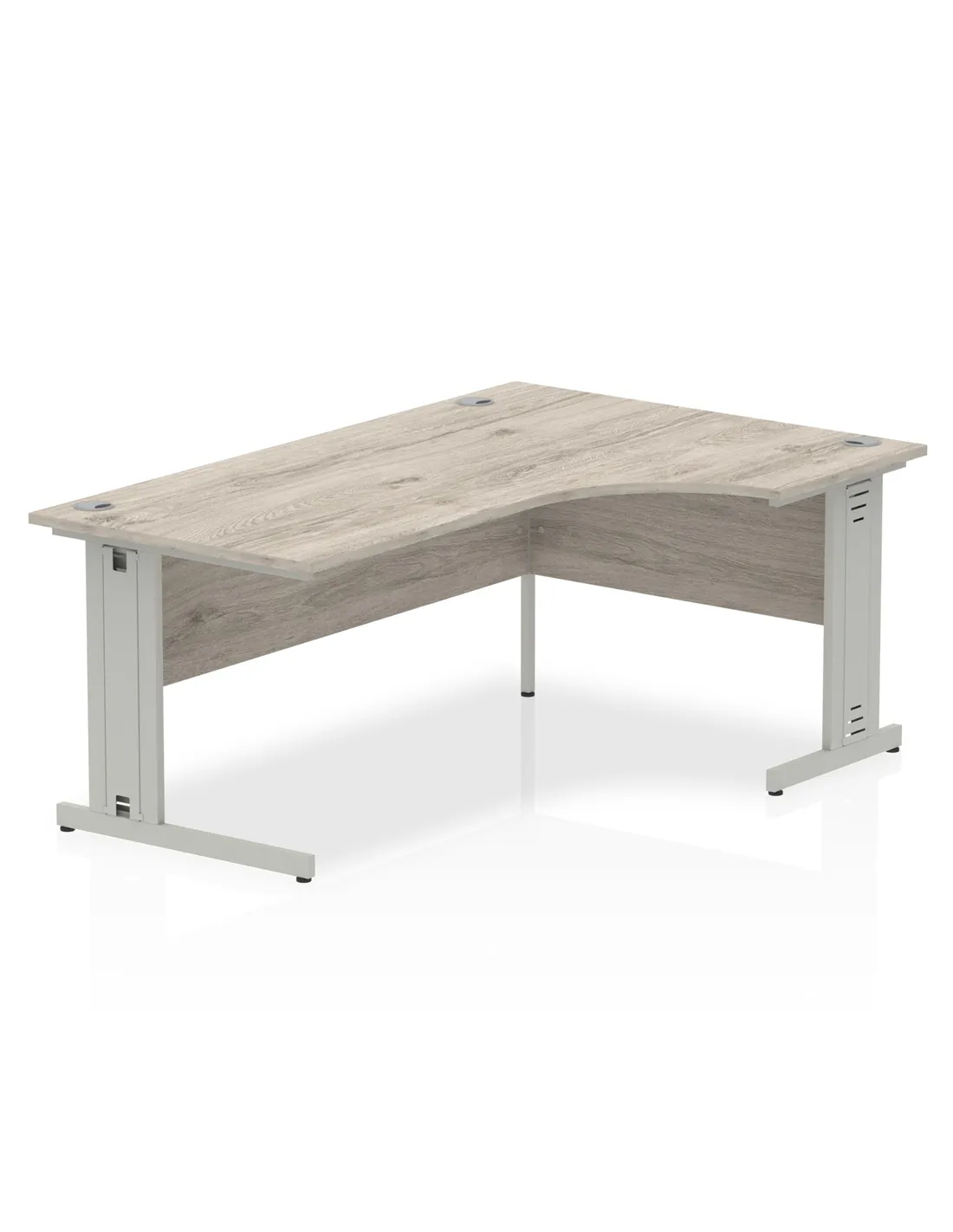 Dynamic Impulse 1800mm Right Crescent Office Desk Grey Oak Top Silver Cable Managed Leg