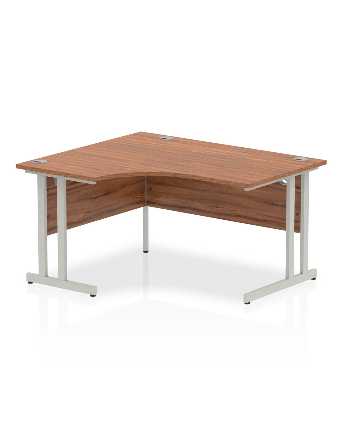 Dynamic Impulse 1400mm Left Crescent Office Desk Walnut Top Silver Cantilever Leg