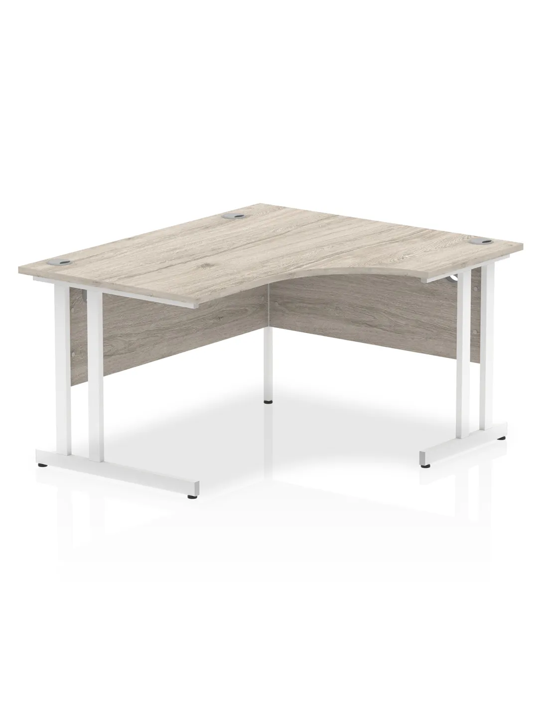 Dynamic Impulse 1400mm Right Crescent Office Desk Grey Oak Top White Cantilever Leg