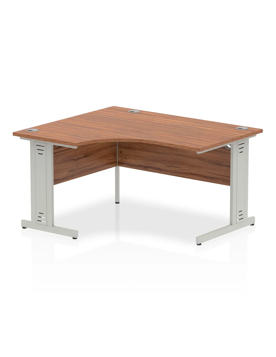 Dynamic Impulse 1400mm Left Crescent Office Desk Walnut Top Silver Cable Managed Leg