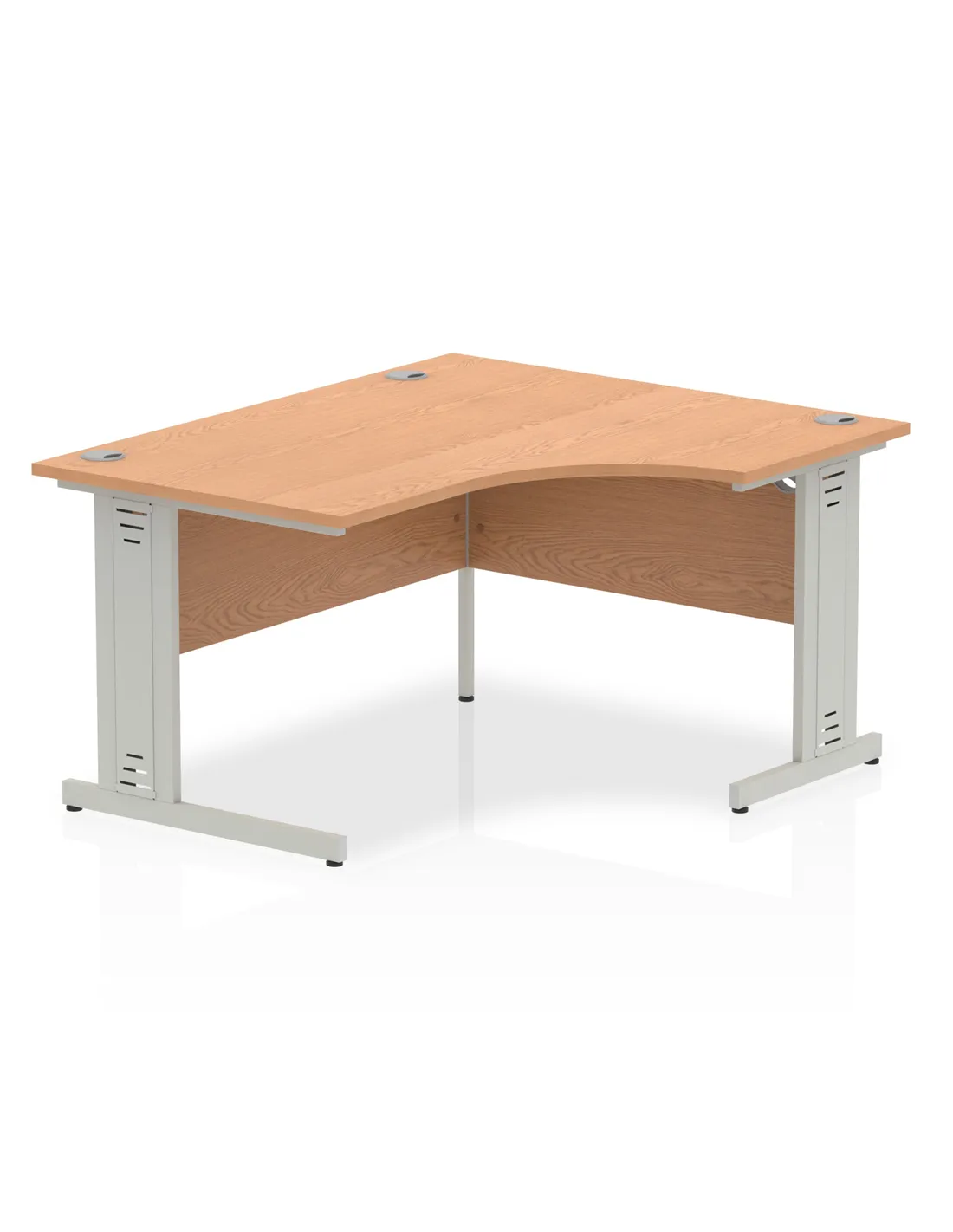 Dynamic Impulse 1400mm Right Crescent Office Desk Oak Top Silver Cable Managed Leg