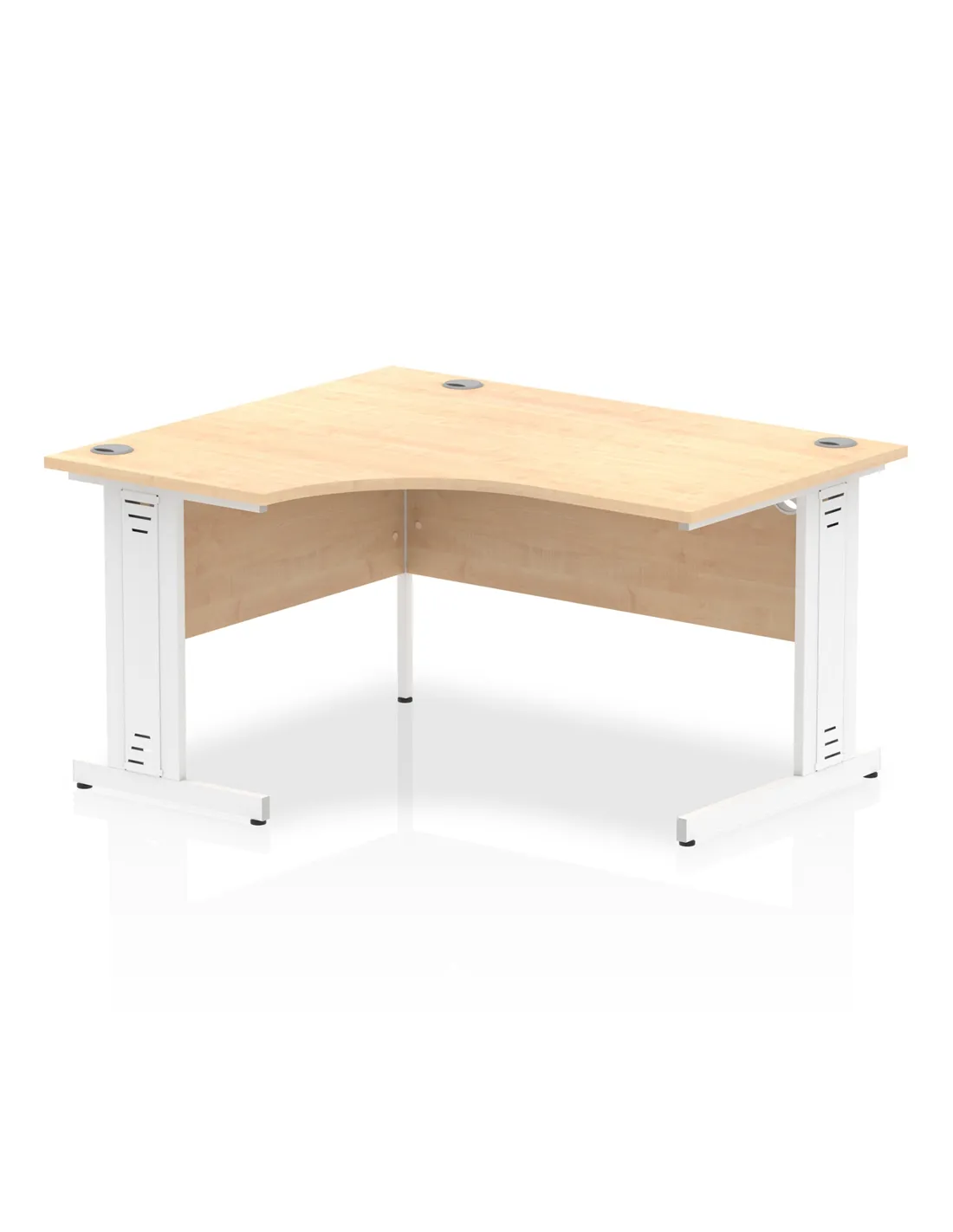 Dynamic Impulse 1400mm Left Crescent Office Desk Maple Top White Cable Managed Leg