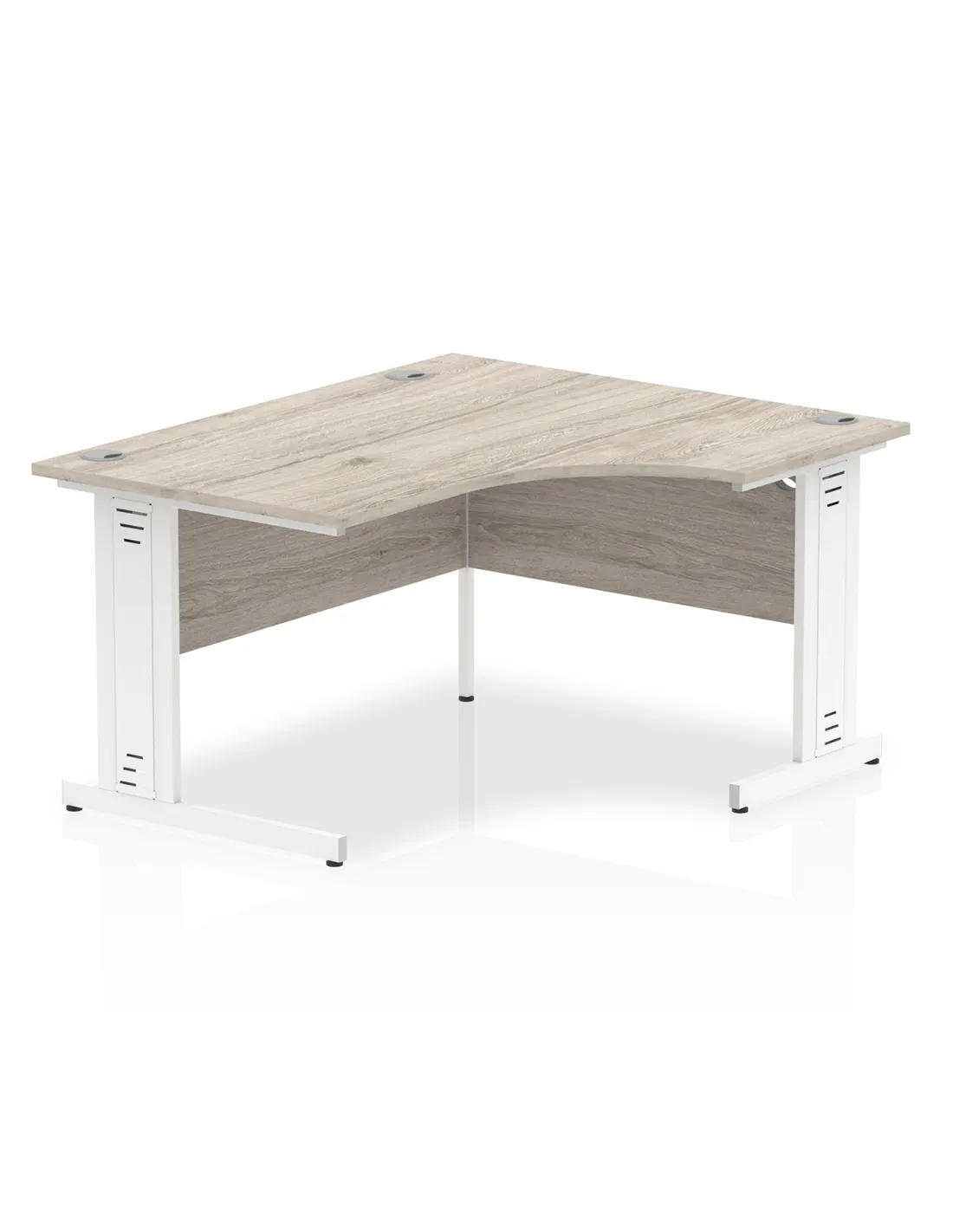 FAQ - Dynamic Impulse 1400mm Right Crescent Office Desk Grey Oak Top White Cable Managed Leg