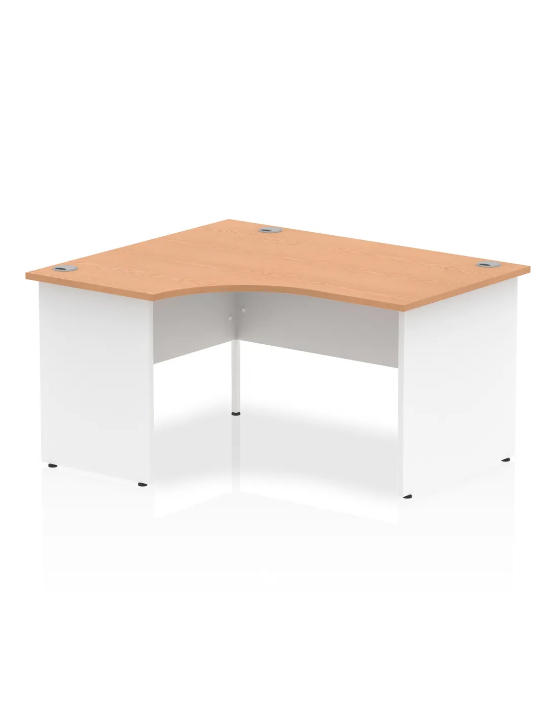Dynamic Impulse 1400mm Left Crescent Office Desk Oak Top White Panel End Leg