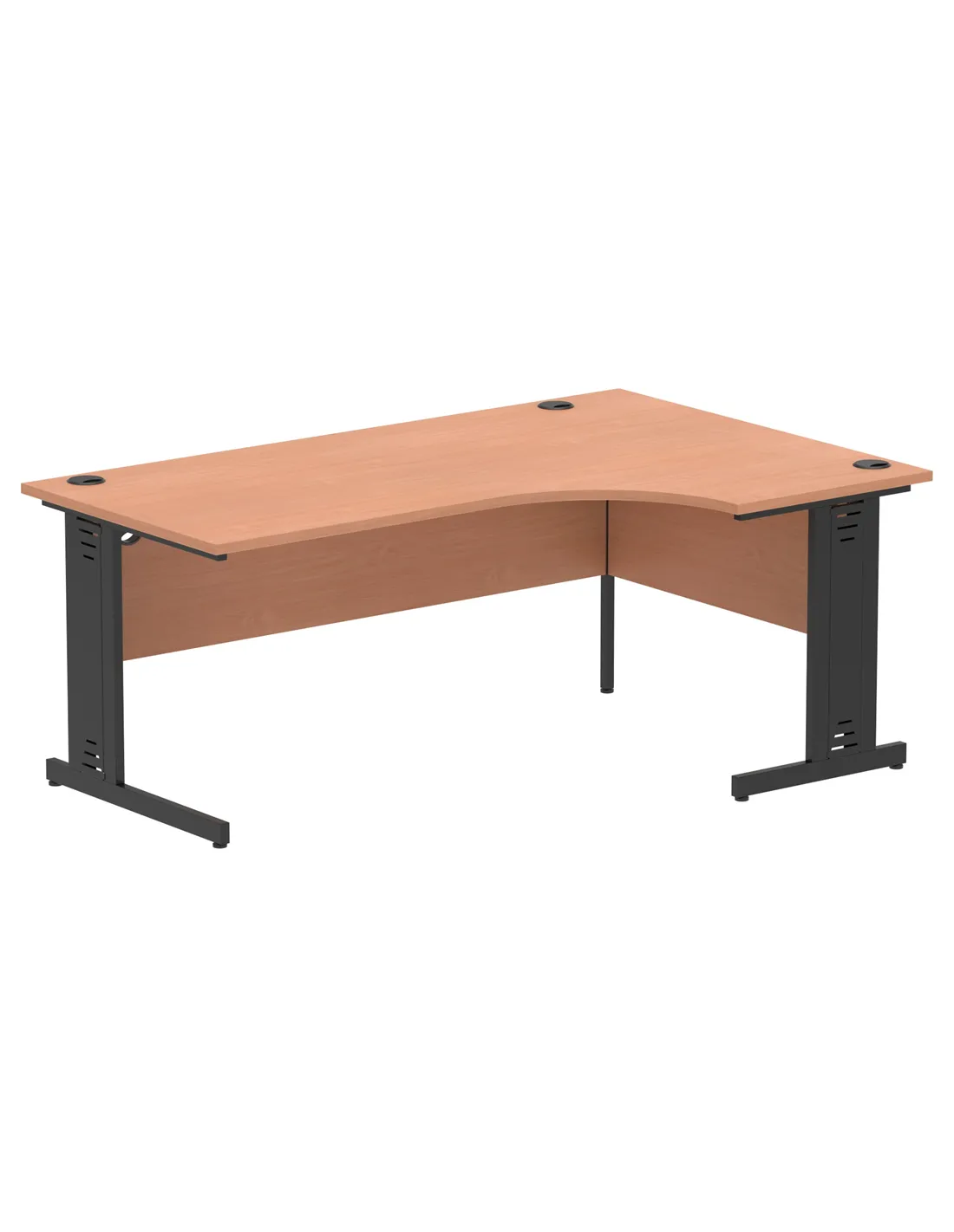 This crescent-shaped desk is perfect for creating an ergonomic and organised workspace. Its right-hand configuration suits corner setups, optimising room layout in both compact and spacious offices. The heat-resistant beech surface is ideal for daily use, resisting wear from hot drinks or office equipment. Cable management features keep wires neatly tucked away, enhancing productivity and reducing clutter. Whether used for computer work, meetings, or creative projects, this desk adapts seamlessly to various professional and home office needs.