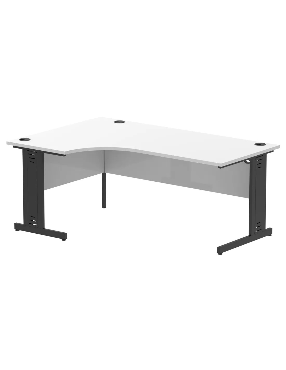 - Featuring black cable-managed legs and three integrated cable ports, this desk keeps wires organised and out of sight. This system reduces clutter, improves safety, and maintains a clean, professional workspace, ideal for busy offices or home setups with multiple electronic devices.