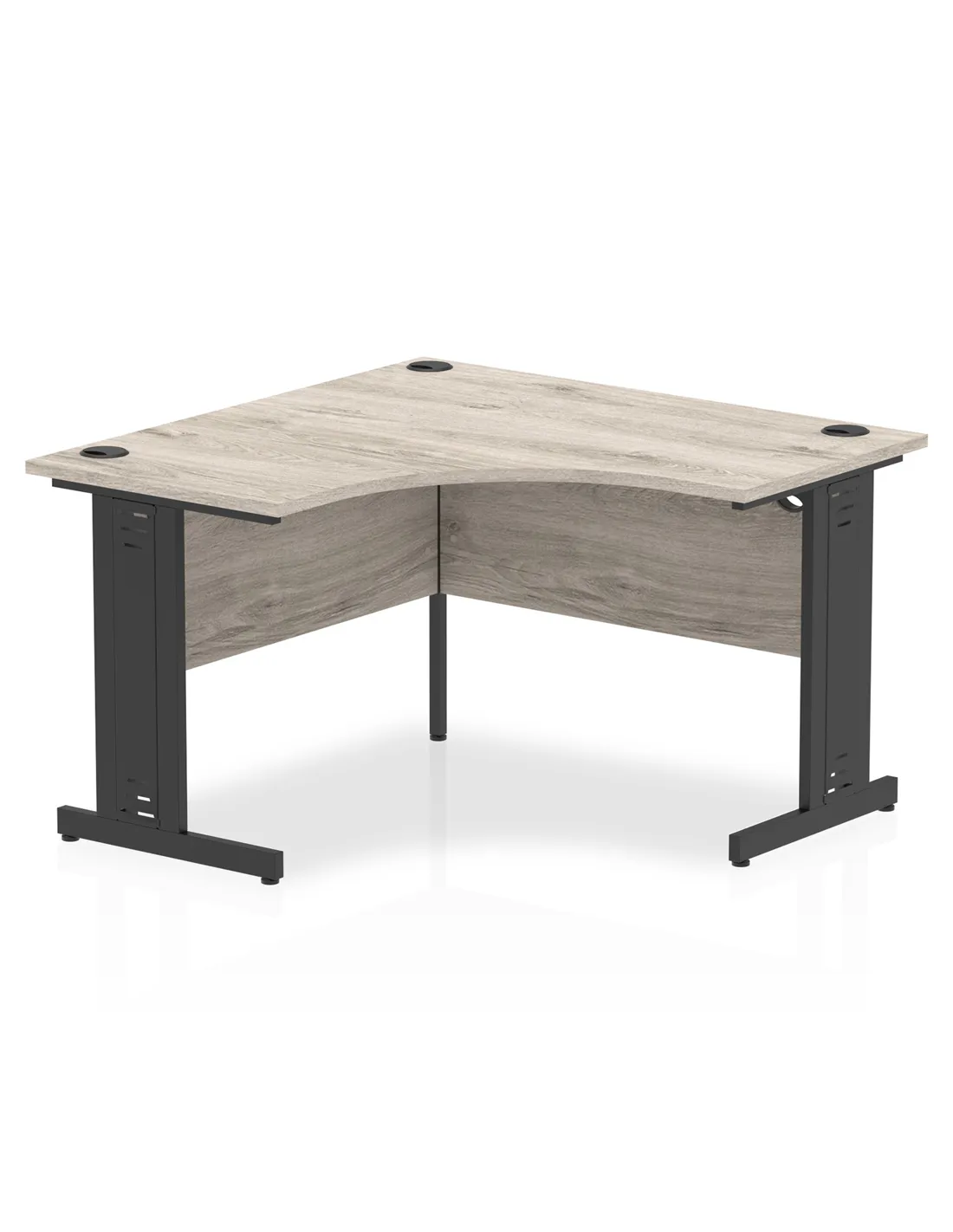Dynamic Impulse 1200mm Corner Office Desk Grey Oak Top Black Cable Managed Leg