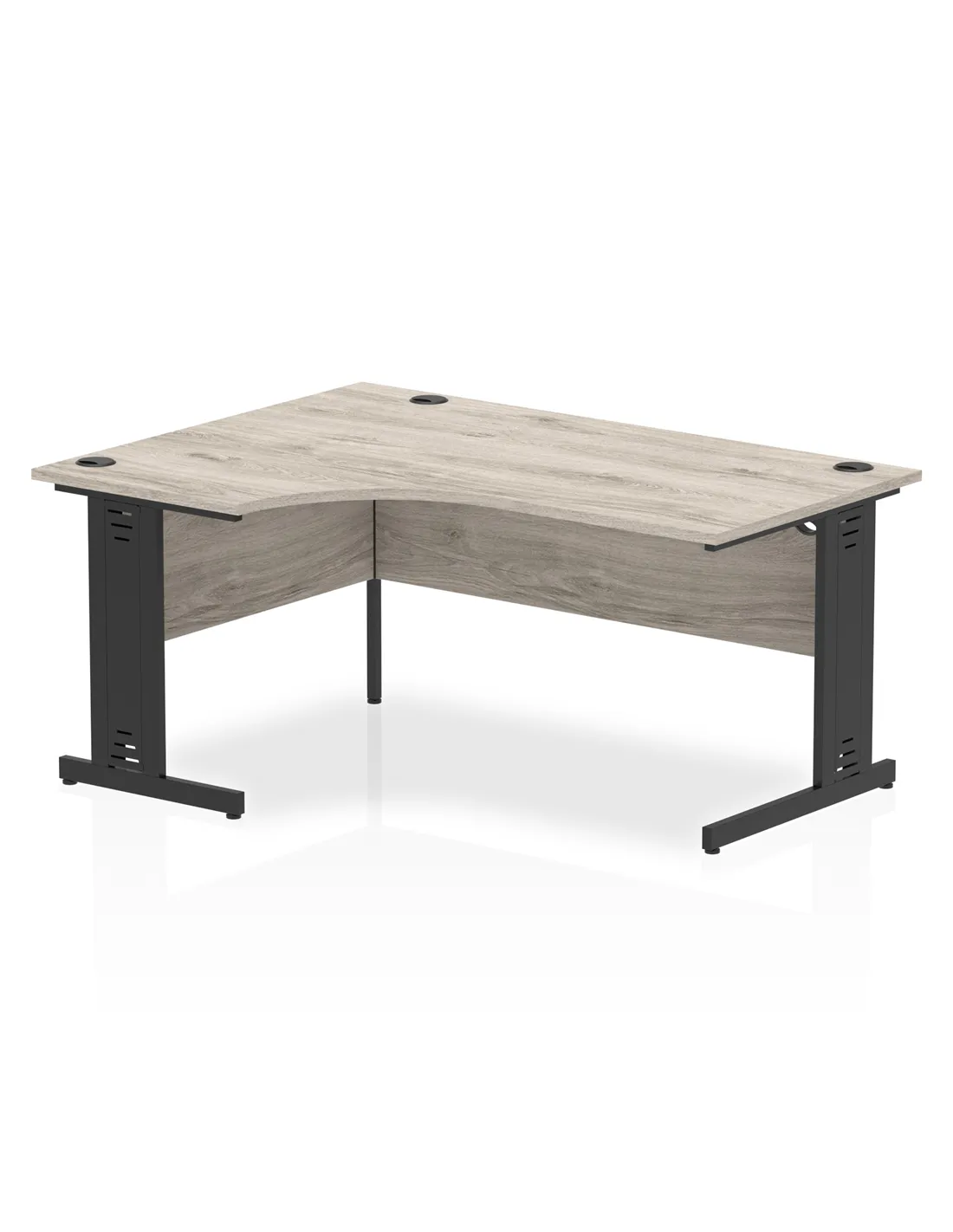 Dynamic Impulse 1600mm Left Crescent Office Desk Grey Oak Top Black Cable Managed Leg