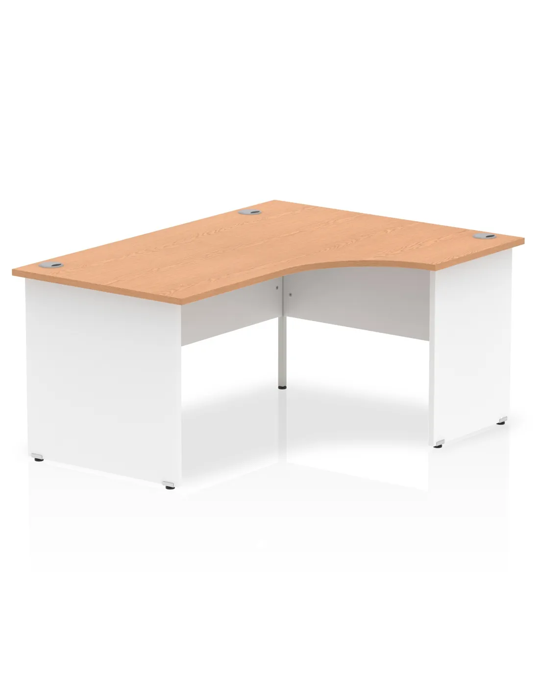Dynamic Impulse 1600mm Right Crescent Office Desk Oak Top White Panel End Leg