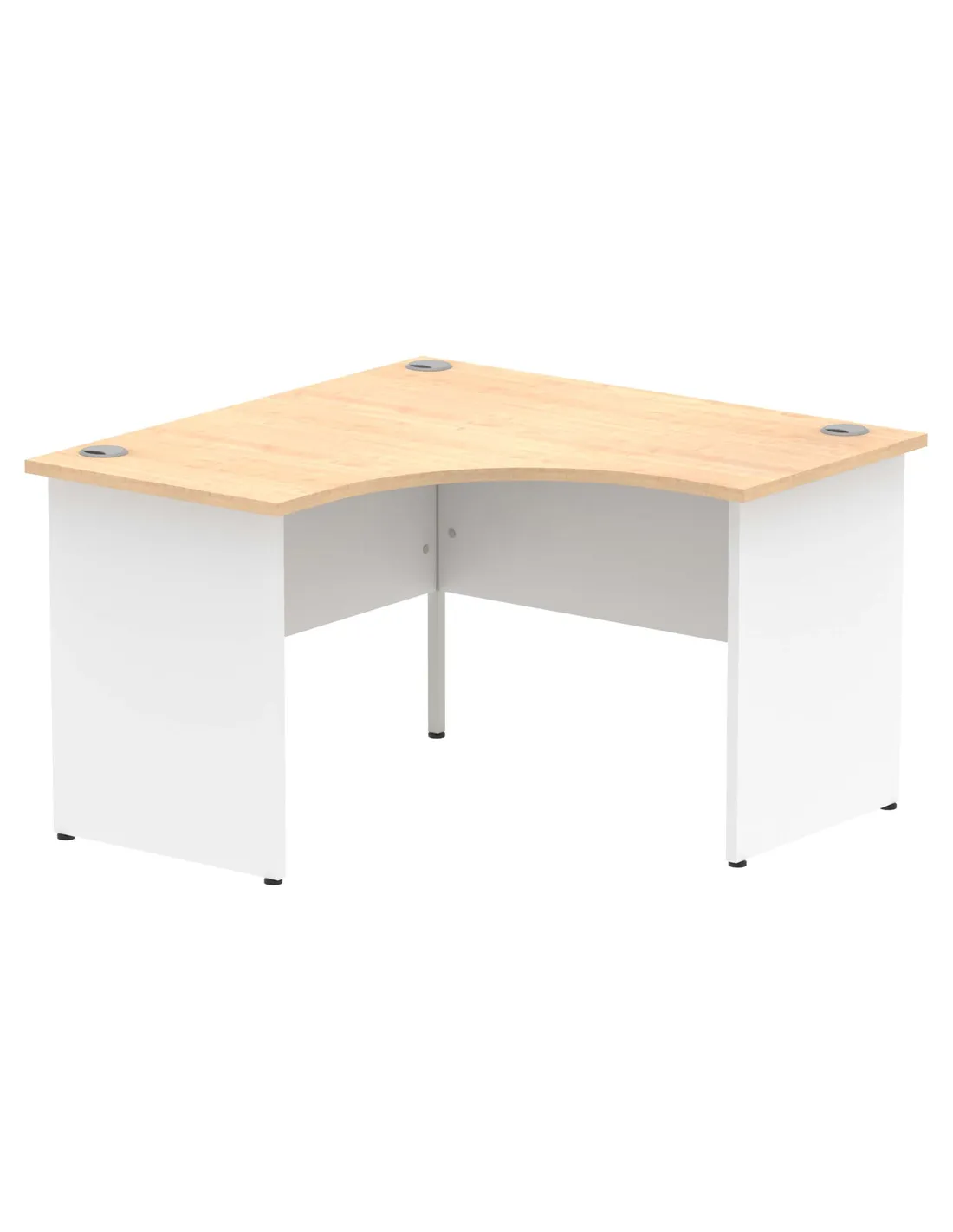 - This corner desk is perfect for home offices, small business workspaces, or study areas where space efficiency and style are essential. Its maple top and white panel legs complement modern interiors, while the crescent shape maximises corner space, making it suitable for multitasking and accommodating multiple devices.
