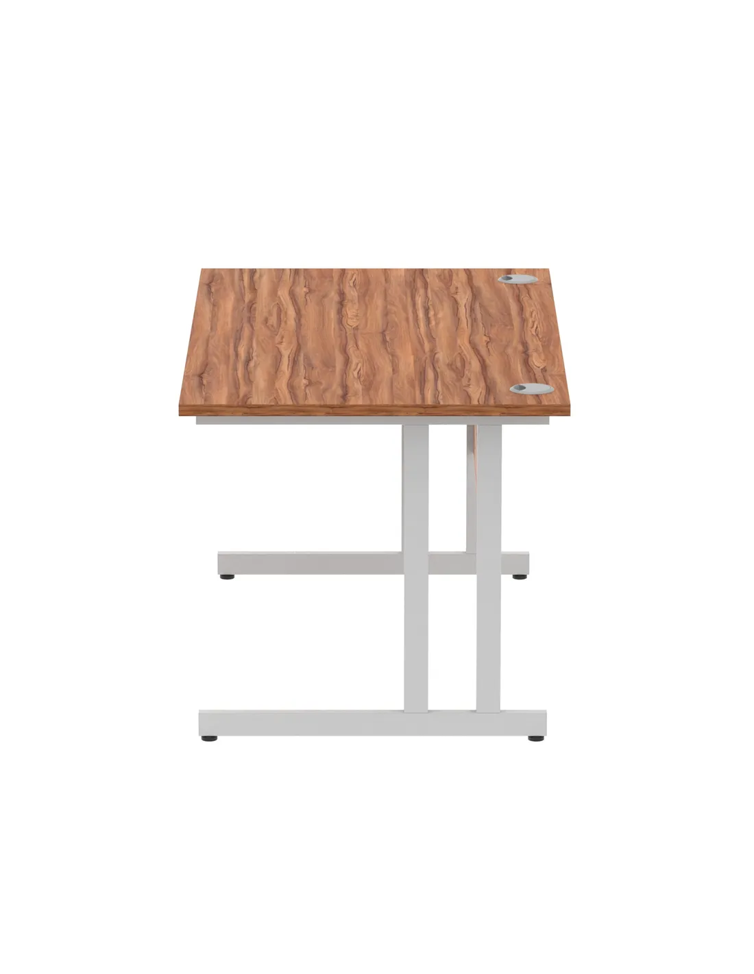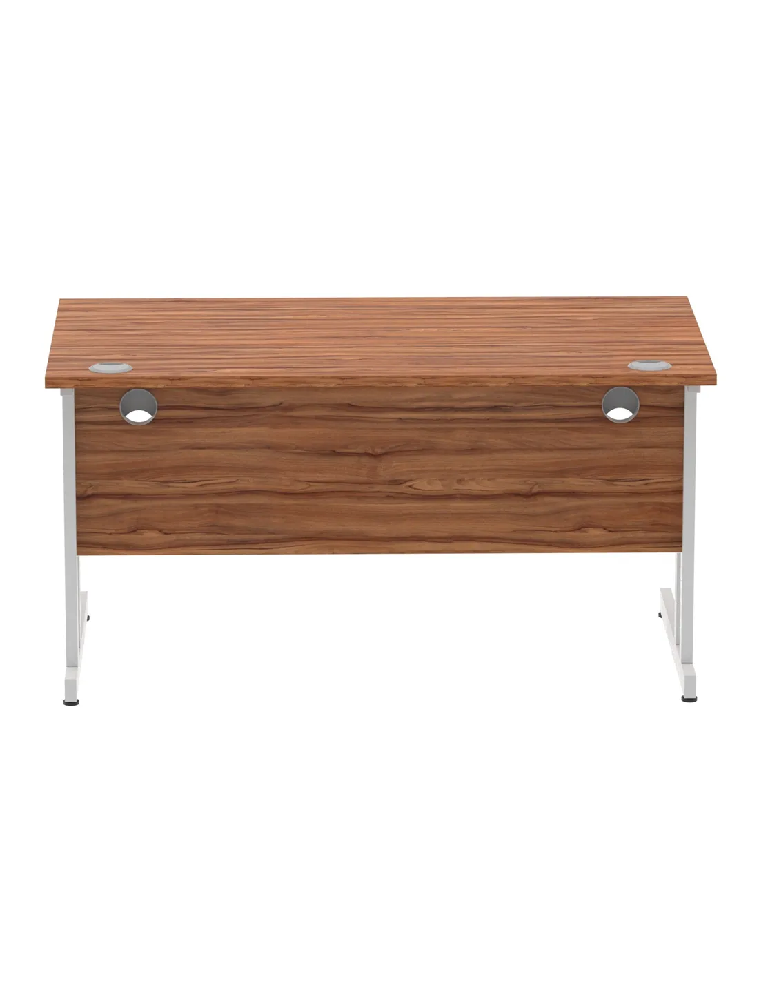 - This versatile desk is perfect for home offices, corporate workspaces, and study areas. Its spacious 1400mm width and durable walnut finish complement both modern and traditional interiors, providing a practical and stylish surface for computers, paperwork, and meetings. The silver cantilever legs add a contemporary touch while ensuring stability, making it suitable for various professional and personal environments.