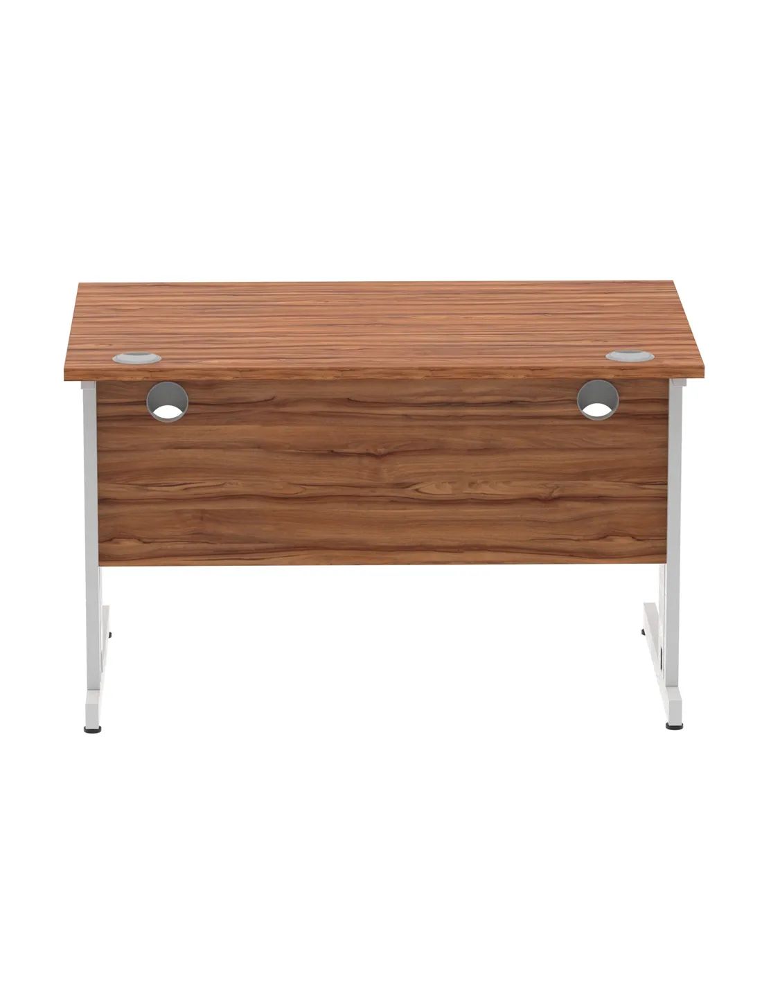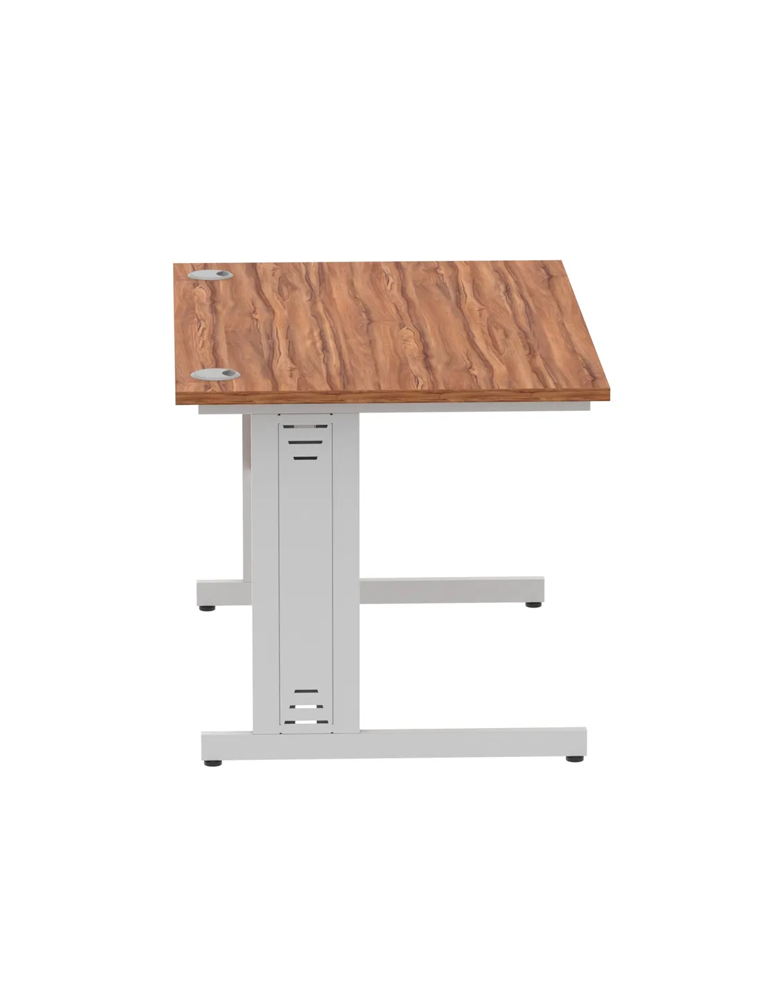 - This versatile desk is perfect for home offices, corporate workspaces, and study areas. Its compact 1200 x 800mm surface with a straight walnut finish complements modern interiors, while the cable managed silver legs keep your workspace tidy and organised. Whether you need a dedicated spot for your laptop or a professional desk for meetings, this model adapts seamlessly to various environments.