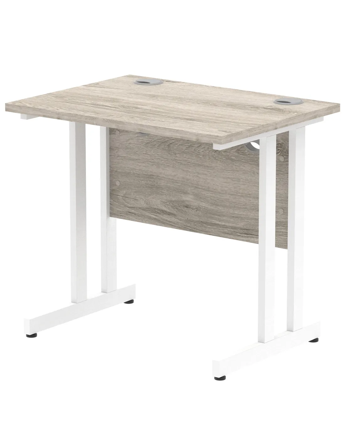 Dynamic Impulse 800 x 600mm Straight Office Desk Grey Oak Top White Cantilever Leg