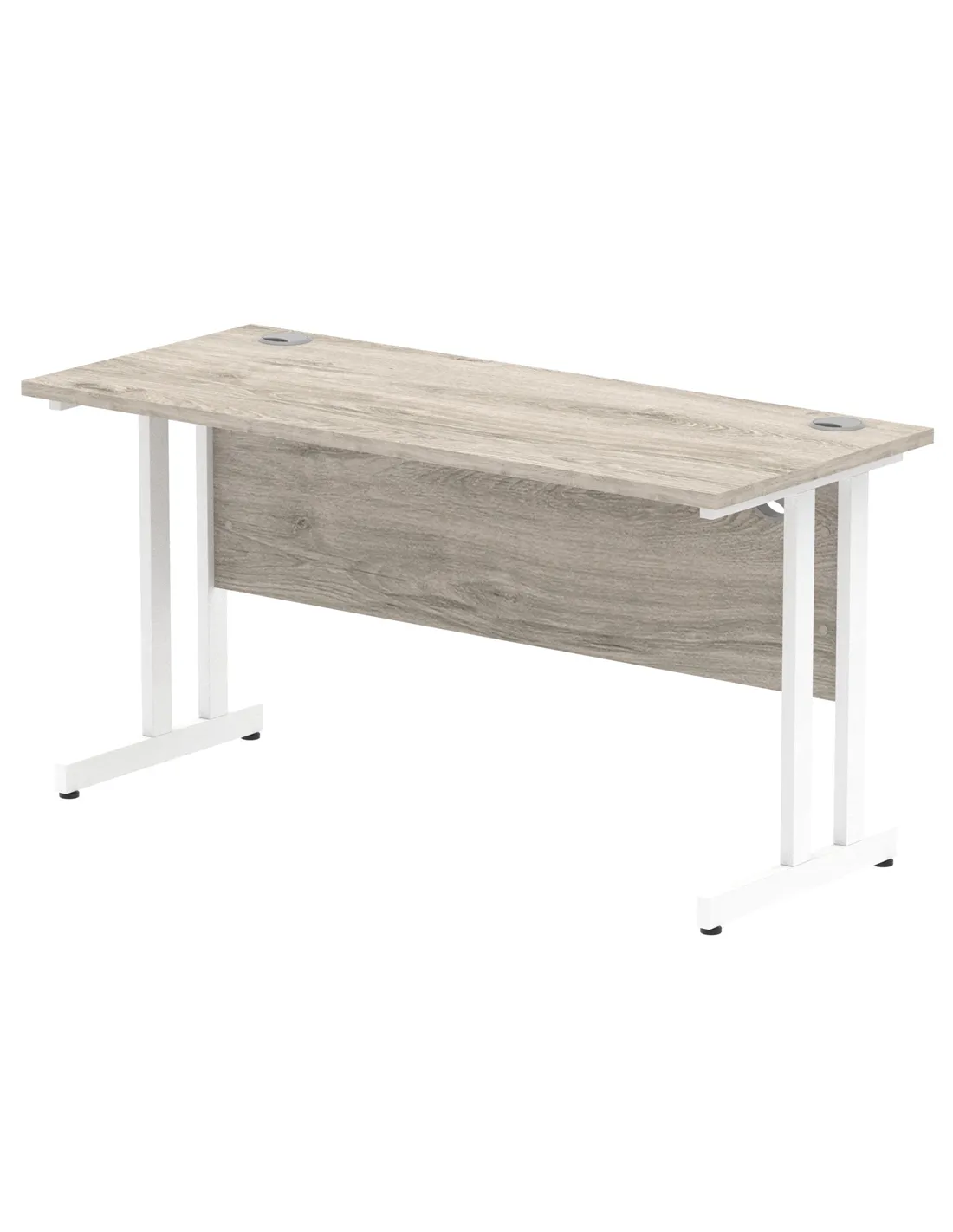Dynamic Impulse 1400 x 600mm Straight Office Desk Grey Oak Top White Cantilever Leg