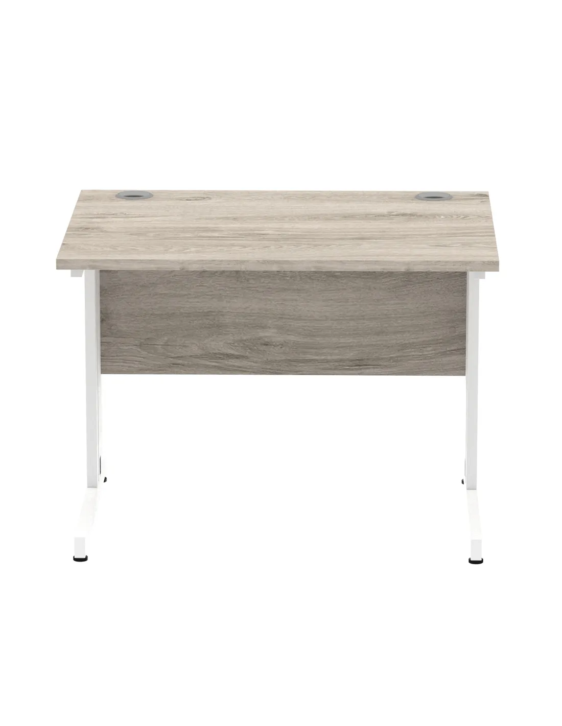 Dynamic Impulse 1000 x 800mm Straight Office Desk Grey Oak Top White Cable Managed Leg