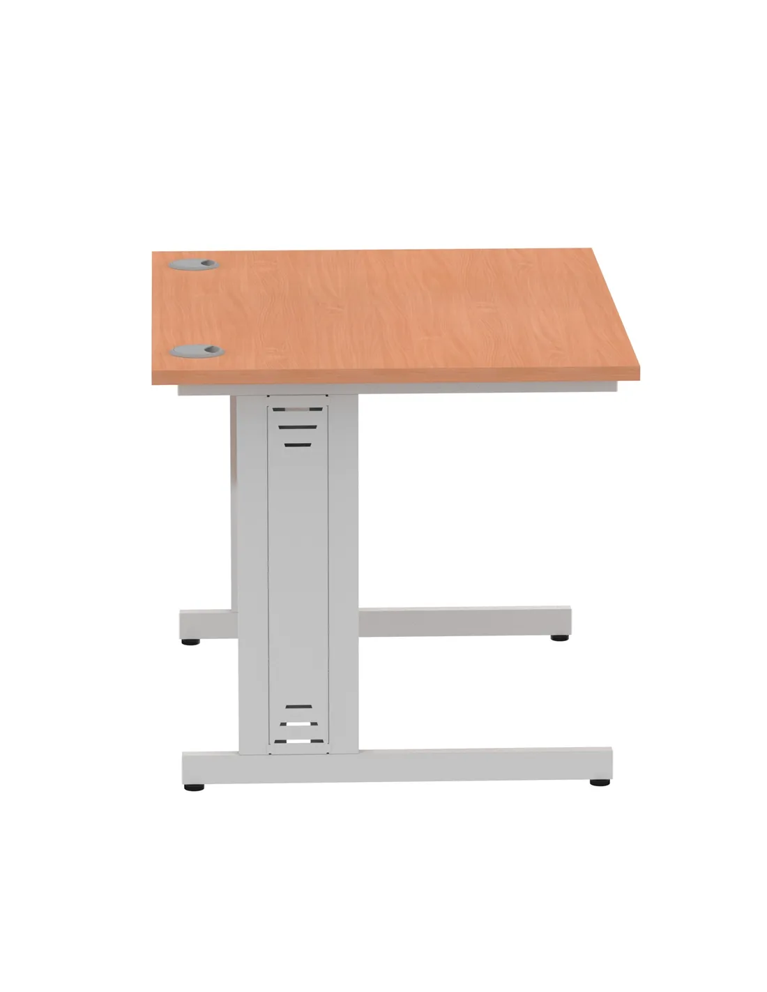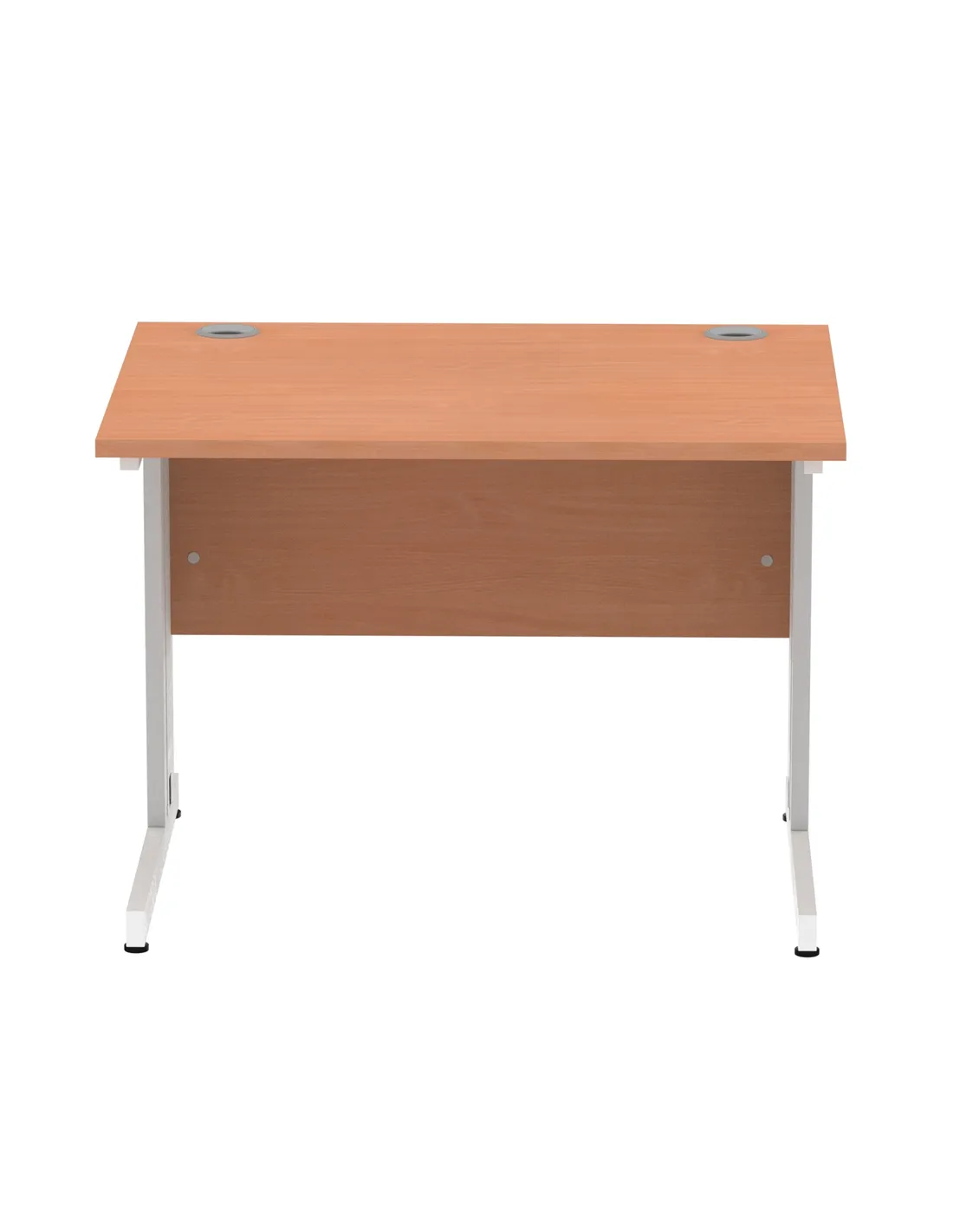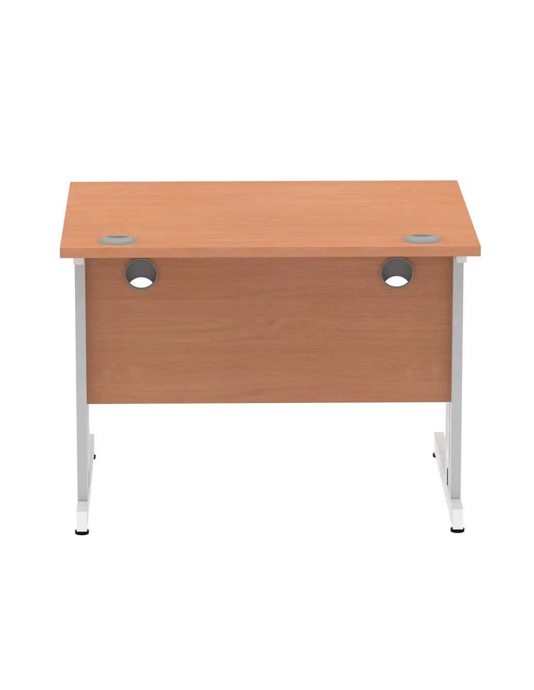 - This versatile office desk is perfect for home offices, corporate workspaces, and study areas. Its compact 1000 x 800mm beech top with silver cable-managed legs fits seamlessly into modern interiors, providing a tidy and efficient workstation. The cable ports and wire management panel help maintain a clutter-free environment, ideal for computer setups, paperwork, and creative tasks.