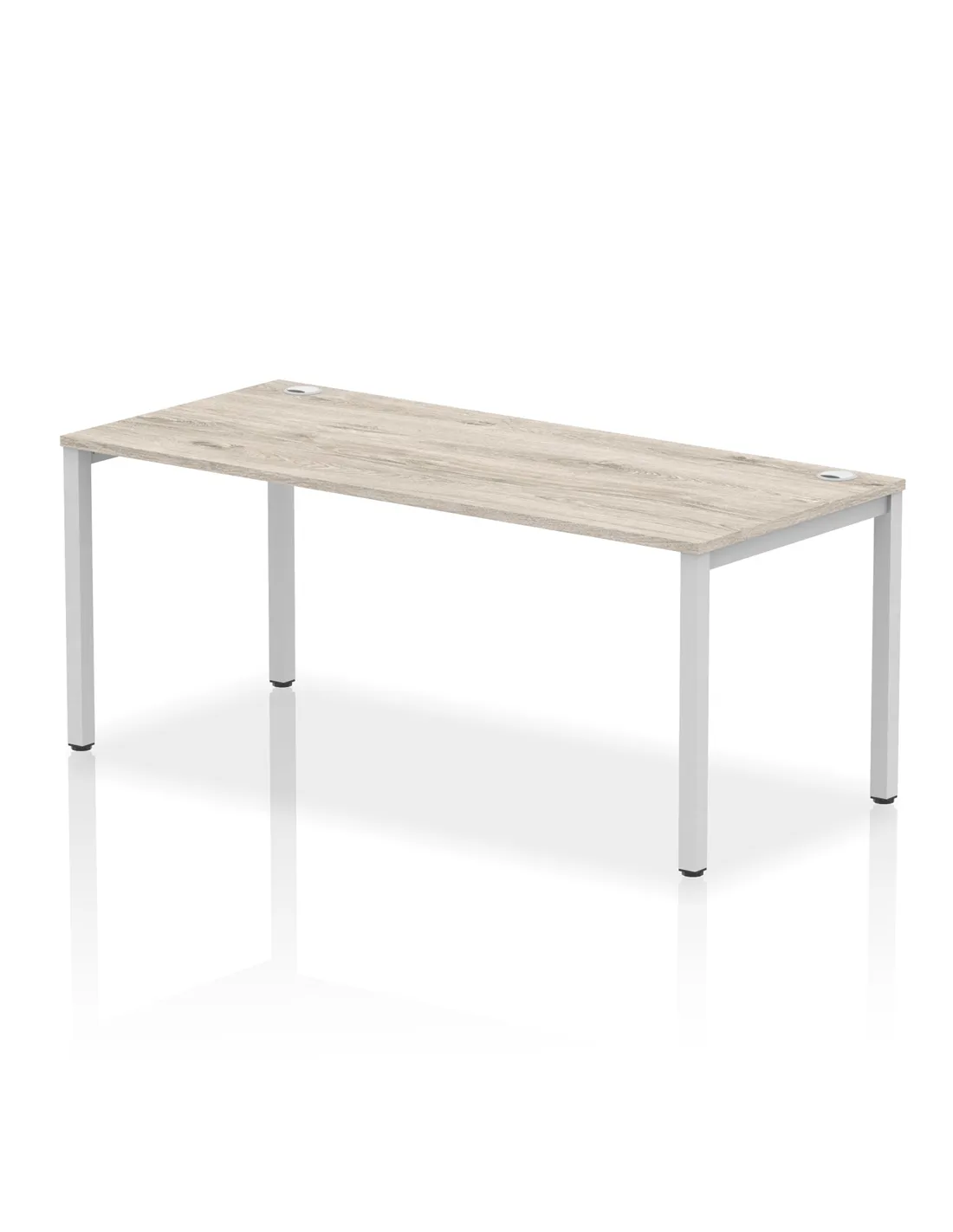 Dynamic Impulse Bench Single Row 1800 Silver Frame Office Bench Desk Grey Oak