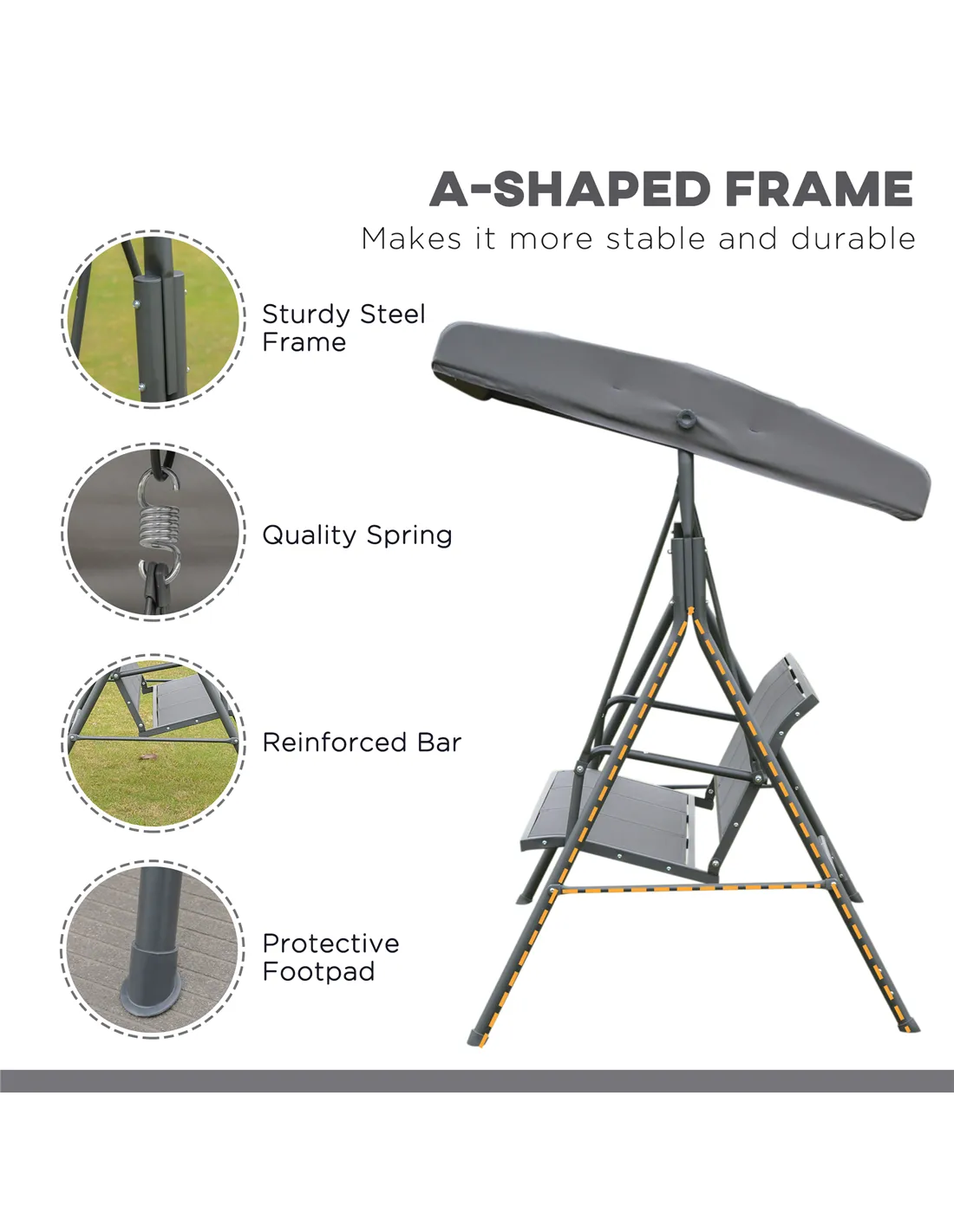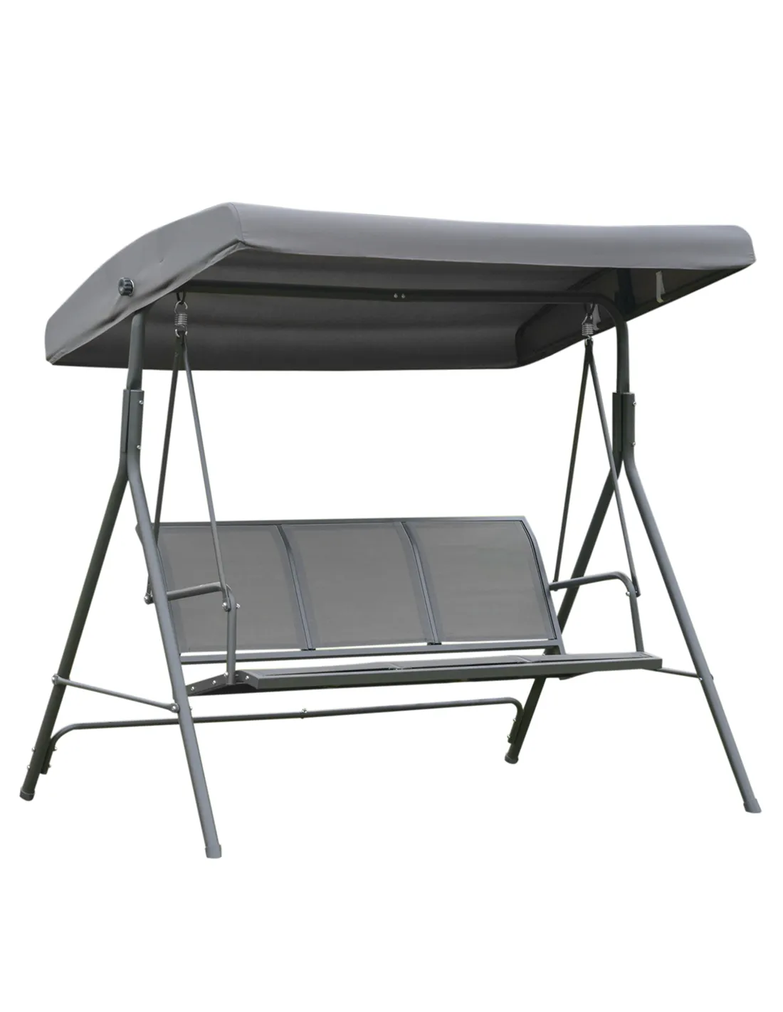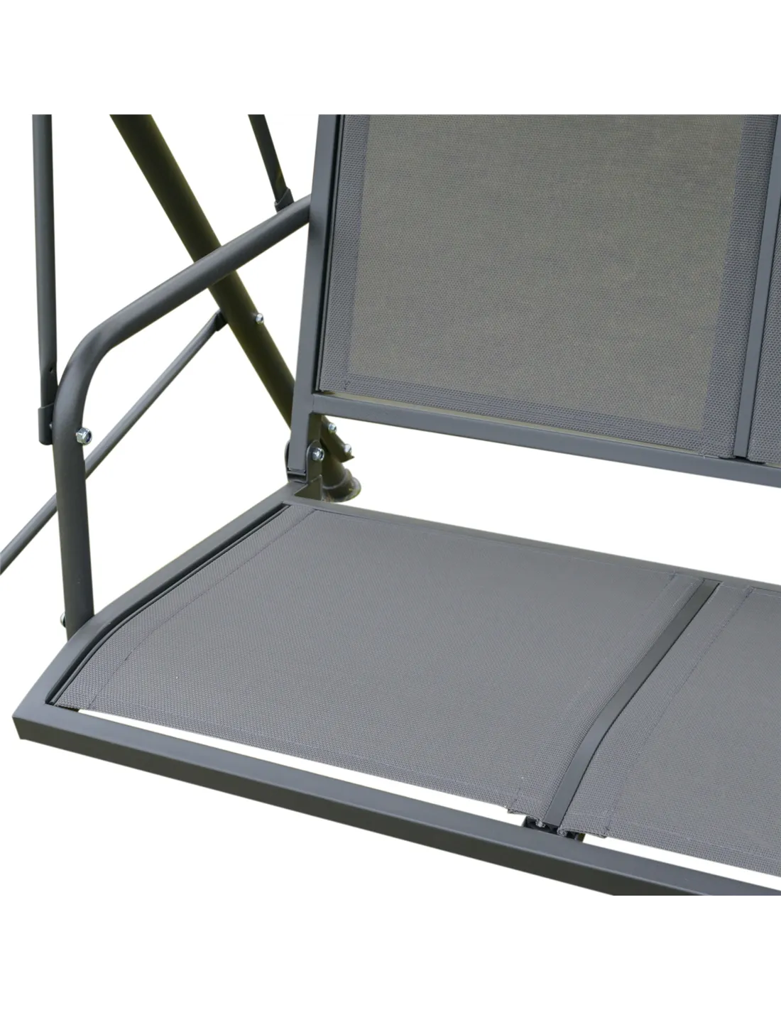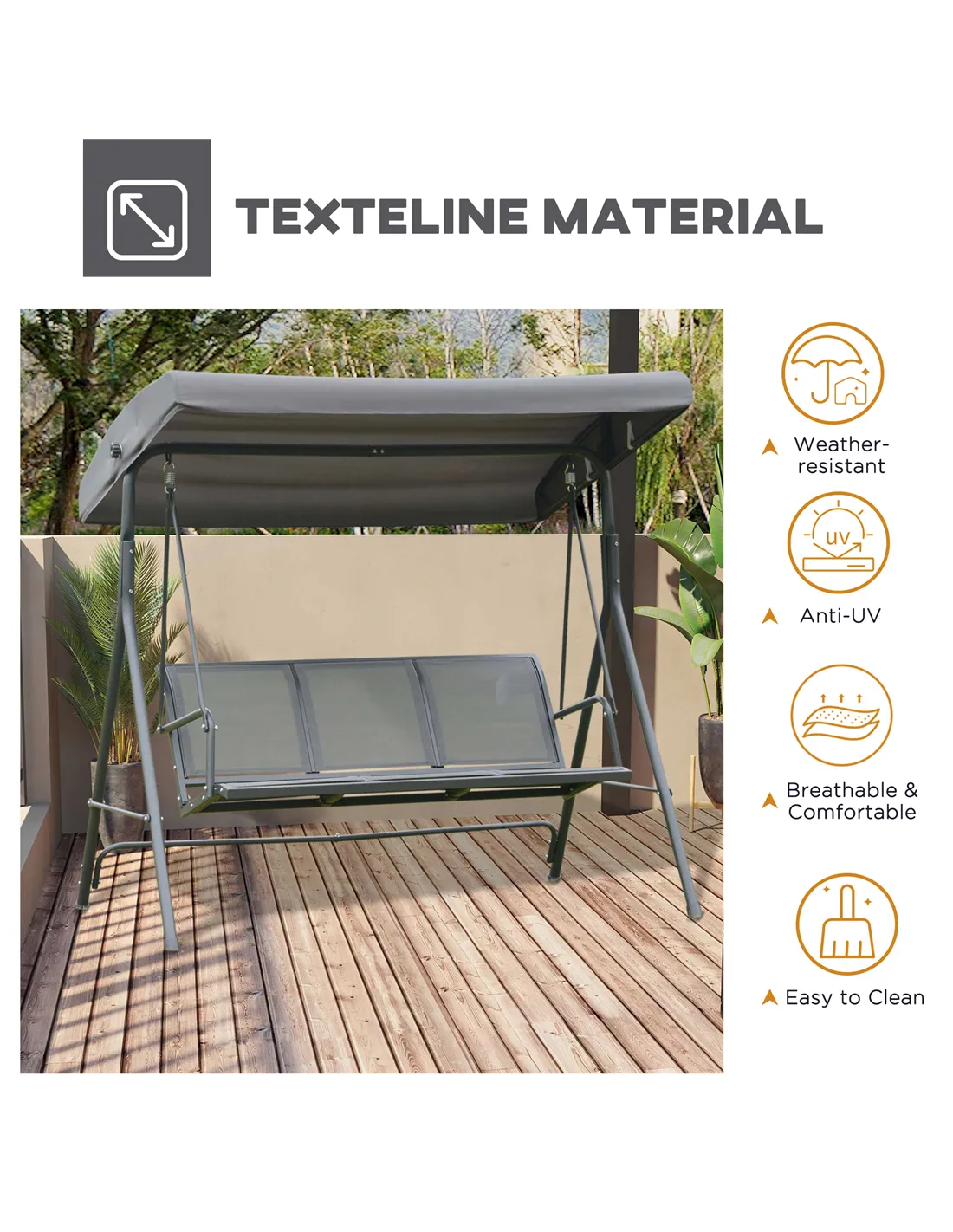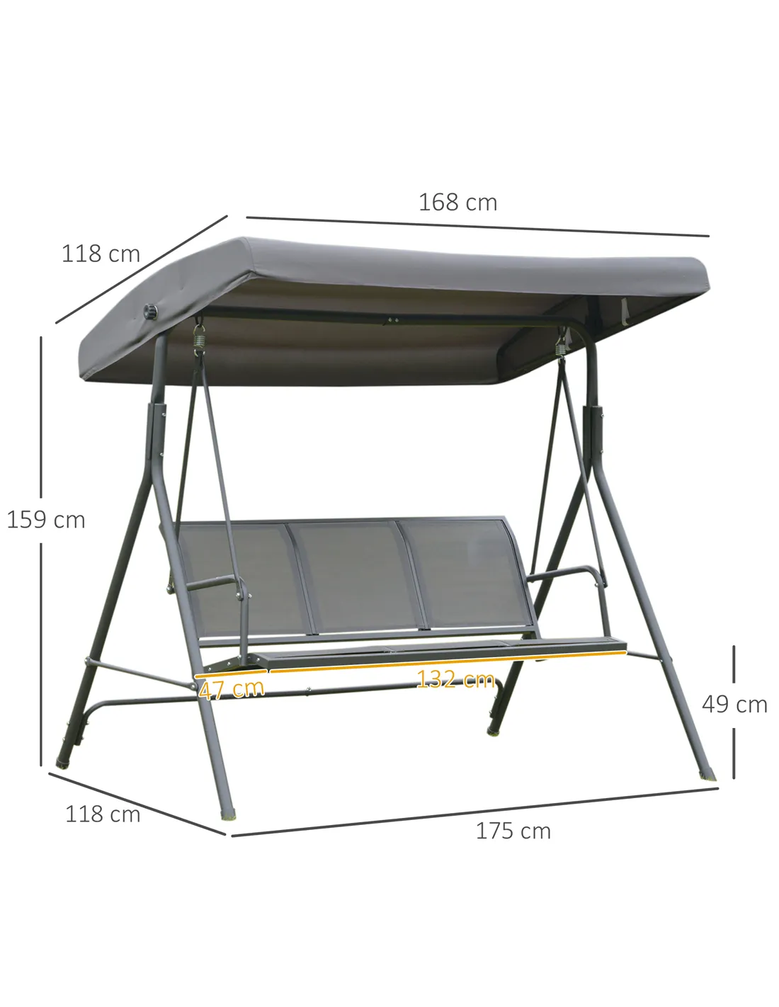 Outsunny 3 Seater Swing Chair, Garden Swing Bench with Canopy, Breathable Mesh Seat and Heavy Duty Steel Frame for Patio, Yard, Grey