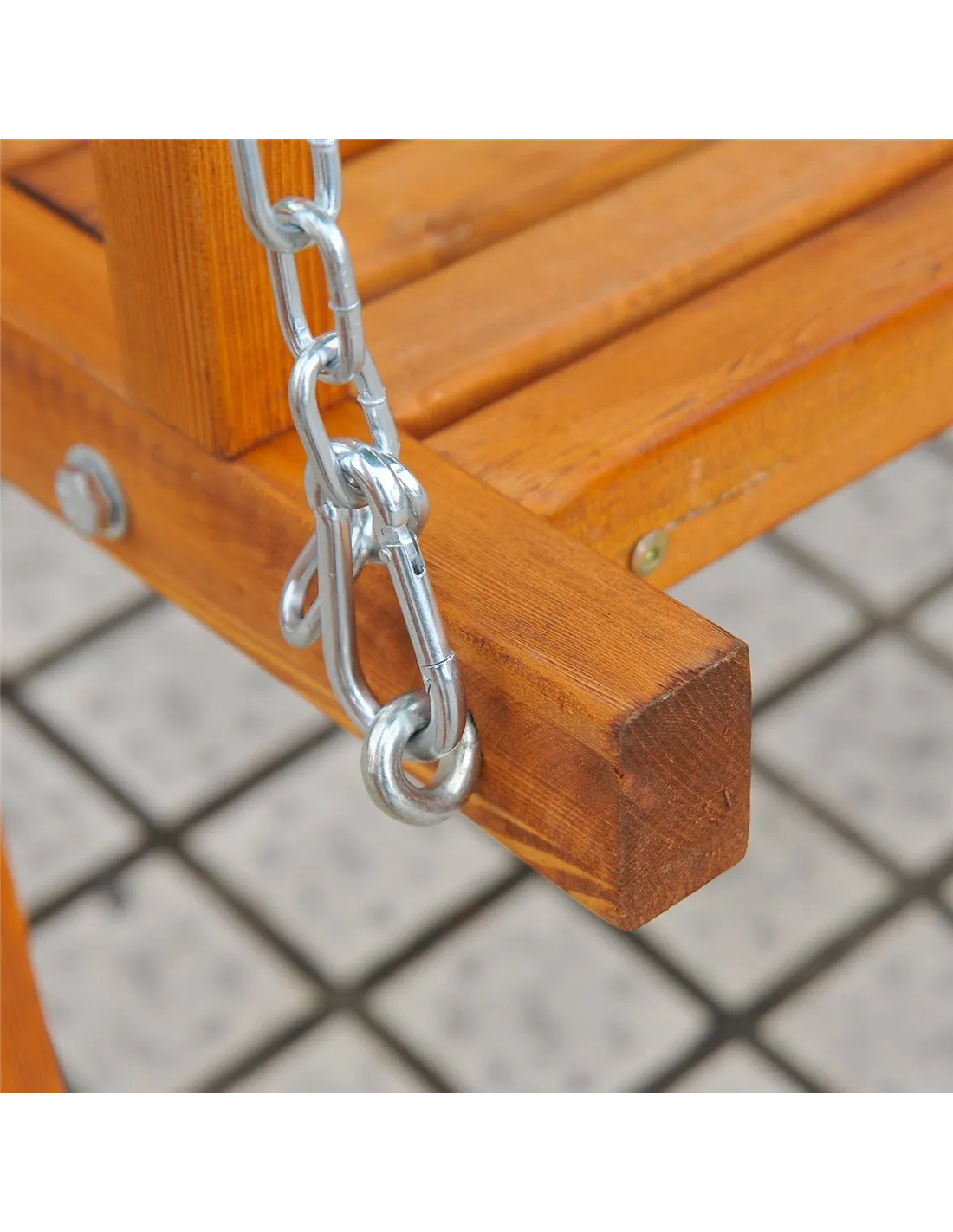 - This stylish swing chair is made from high quality Russian larch wood and galvanized steel chains