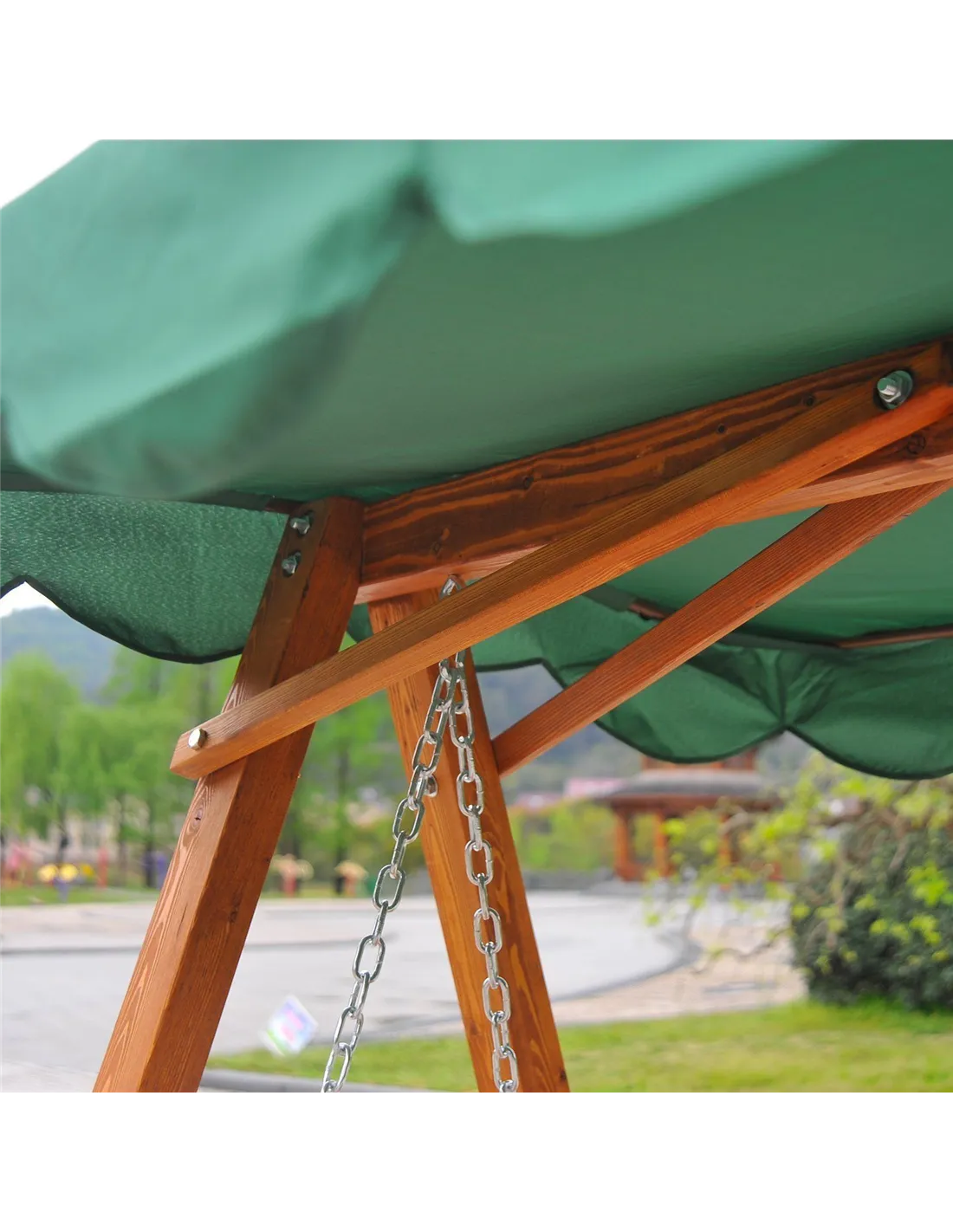 - Material: Larch wood, polyester fabric, metal chain