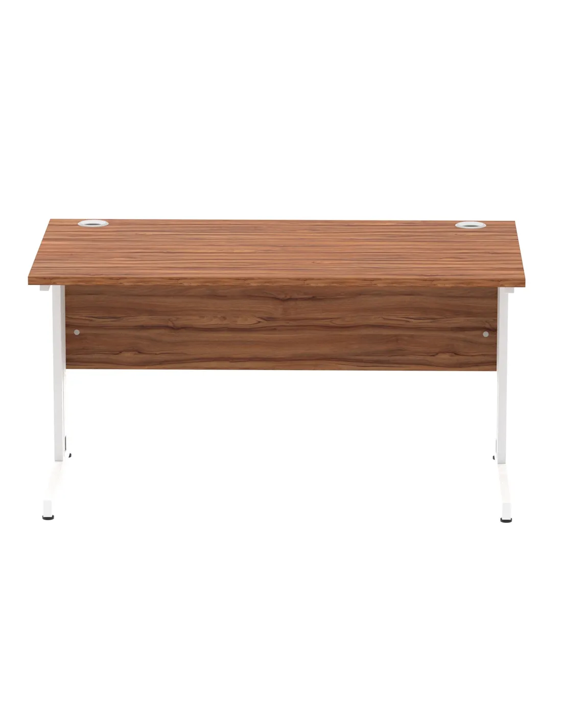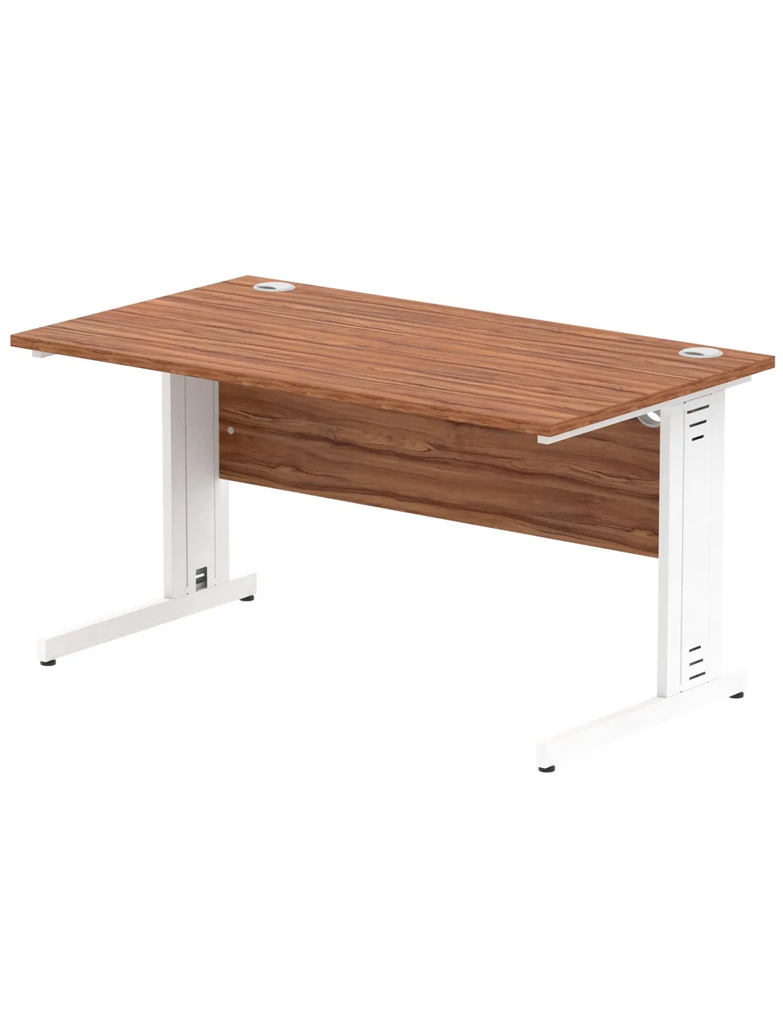 - This desk is perfect for home offices, corporate workspaces, and study areas. Its compact 1400 x 800mm surface with a heat-resistant walnut finish complements modern interiors, while the cable-managed white legs keep your workspace tidy and organised. Customers often highlight its suitability for both professional and creative environments.