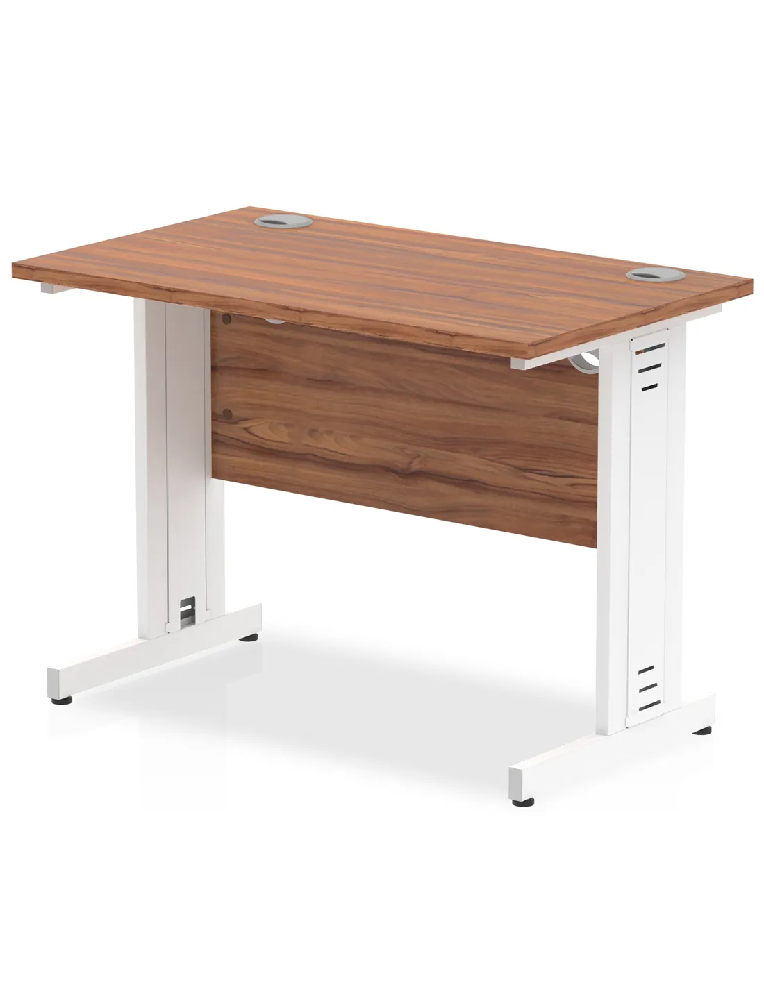 Dynamic Impulse 1000 x 600mm Straight Office Desk Walnut Top White Cable Managed Leg