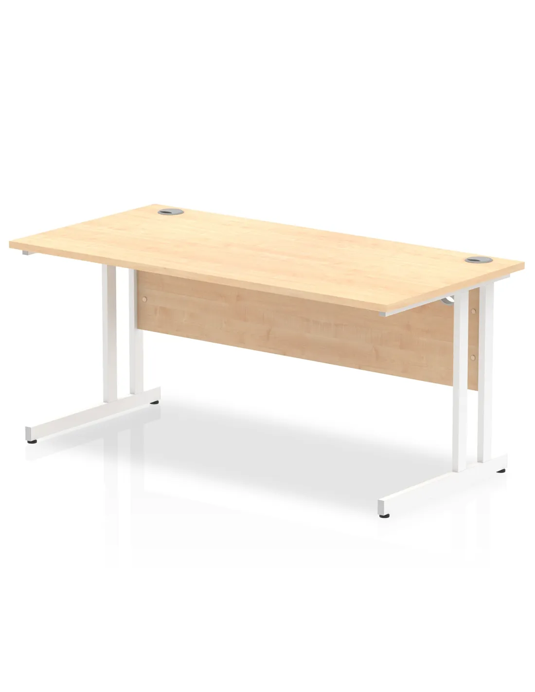 - This versatile desk is perfect for home offices, corporate workspaces, and study areas. Its spacious 1600mm width and durable maple finish provide a practical and stylish surface for computers, paperwork, and office accessories. The white cantilever legs add a modern touch, making it suitable for both contemporary and traditional interiors.