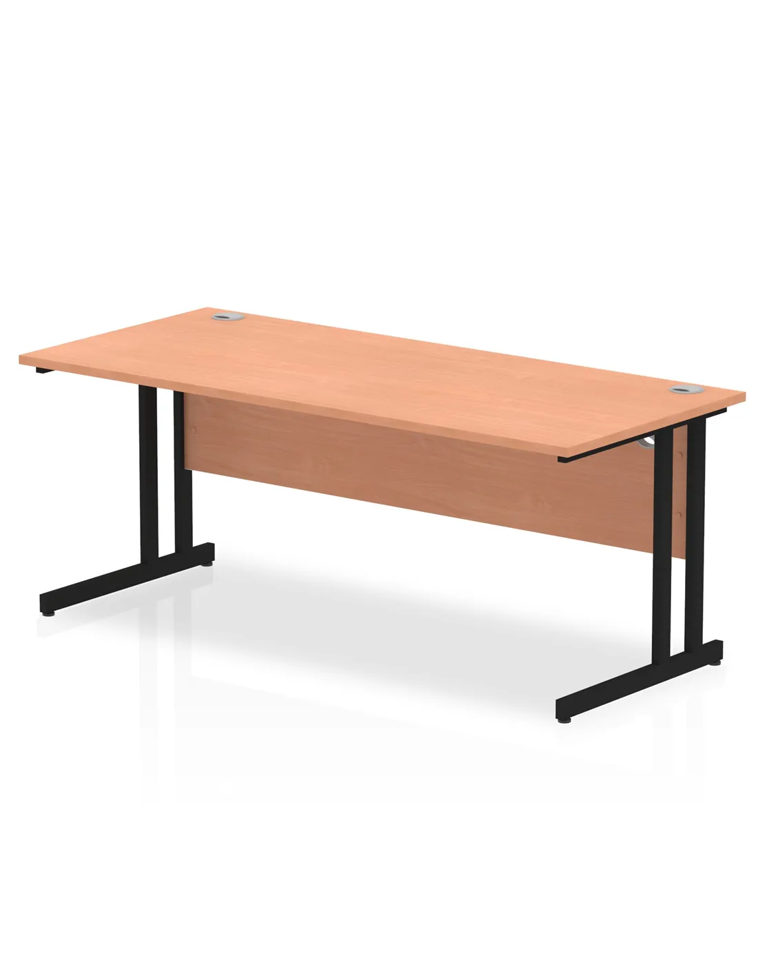 - This versatile desk is perfect for home offices, corporate workspaces, and study areas. Its spacious 1800mm by 800mm beech melamine surface provides ample room for computers, paperwork, and office accessories, while the black cantilever legs add a modern touch that complements various interior styles. Whether you need a practical workstation or a stylish desk for meetings, this model adapts seamlessly to your environment.