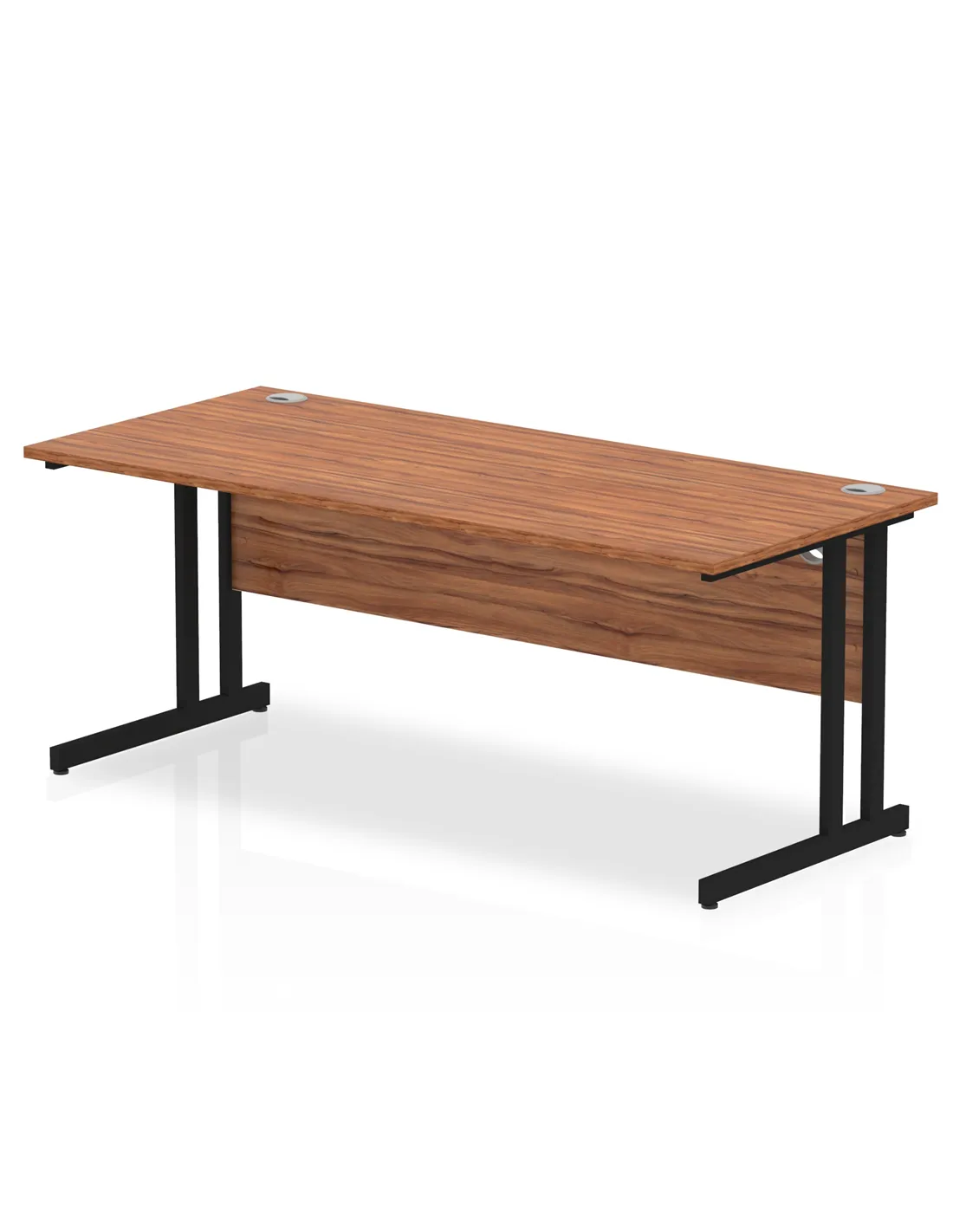- This versatile desk is ideal for home offices, corporate workspaces, and study areas. Its spacious 1800mm width and durable walnut finish provide a professional look while accommodating computers, paperwork, and office accessories. The cantilever legs offer ample legroom, making it suitable for long working hours.