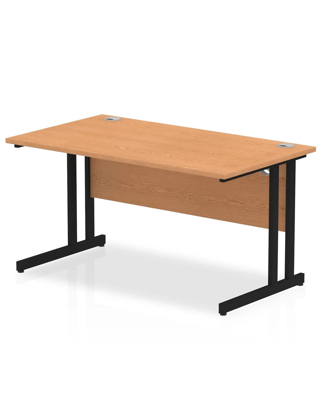 Dynamic Impulse 1400 x 800mm Straight Office Desk Oak Top Black Cantilever Leg