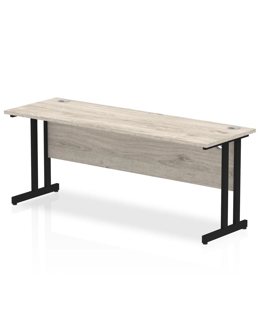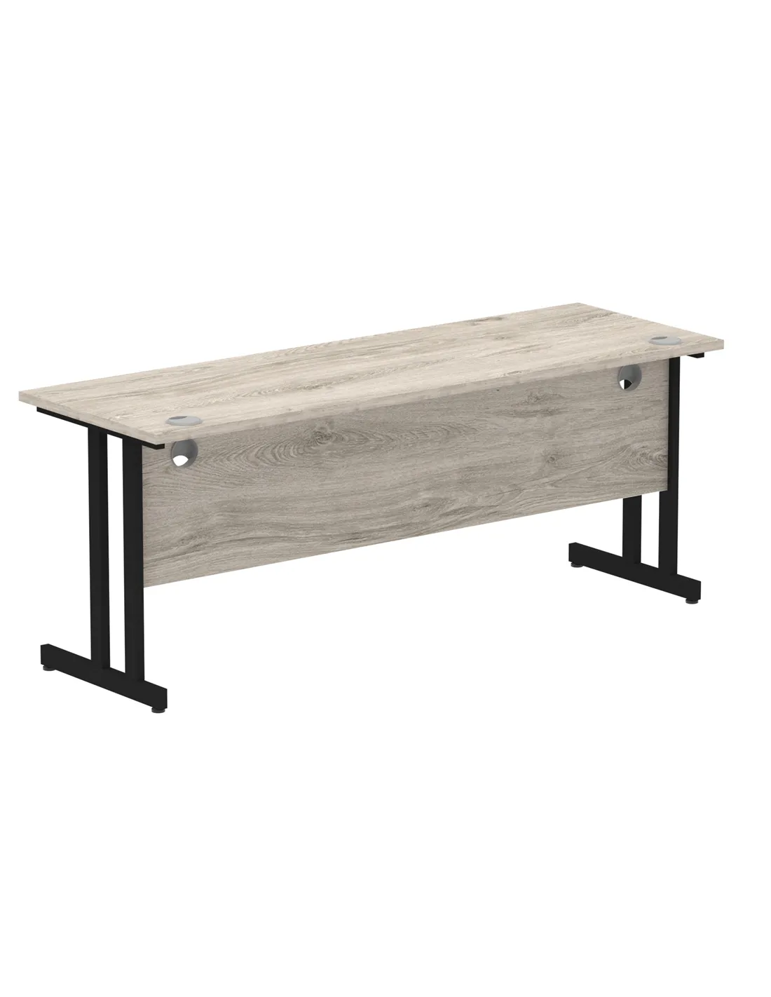 - This versatile desk is perfect for home offices, corporate workspaces, and study areas. Its spacious 1800mm width and durable Grey Oak surface provide ample room for computers, paperwork, and office accessories. The sleek black cantilever legs add a modern touch, making it suitable for both professional and contemporary interiors.