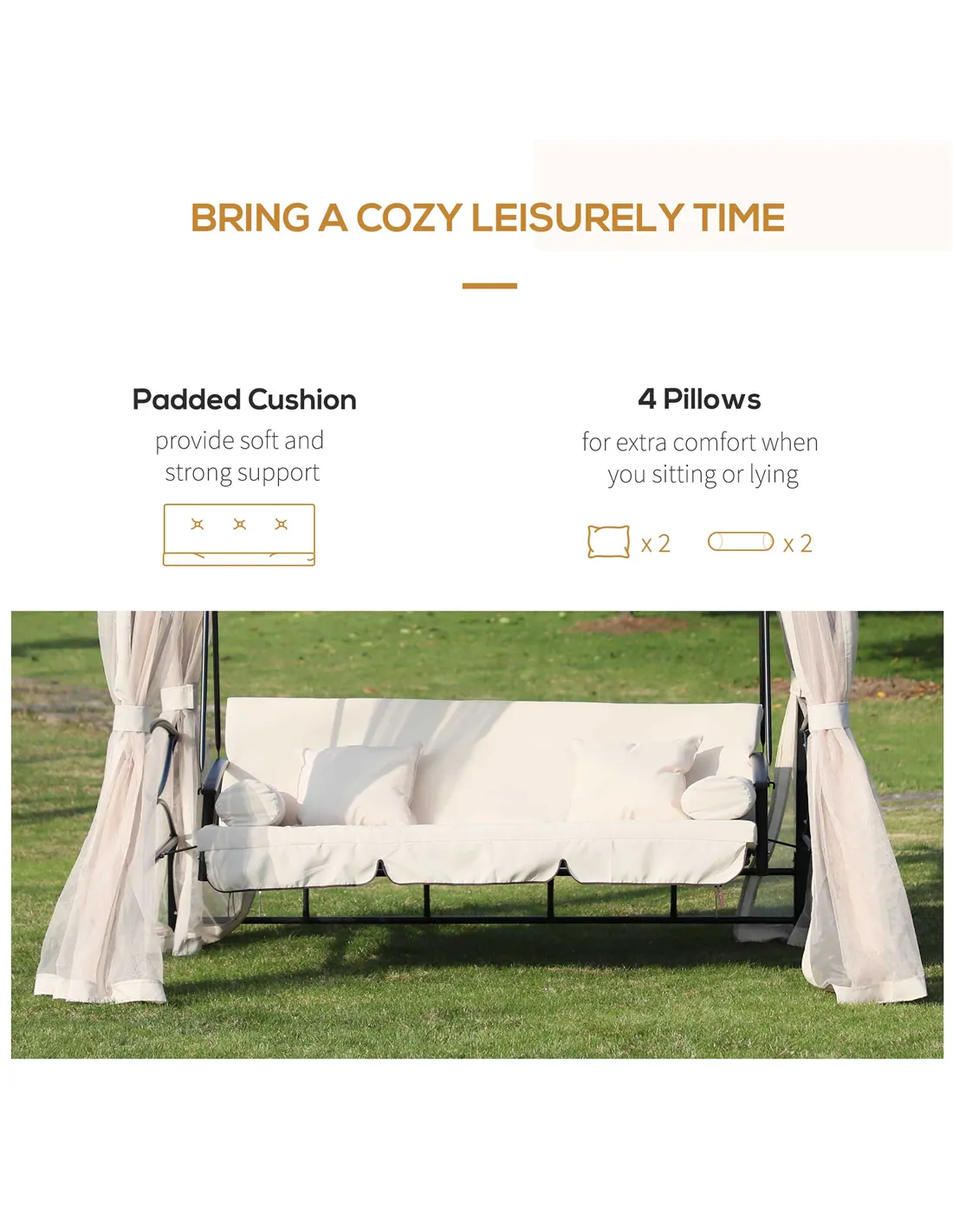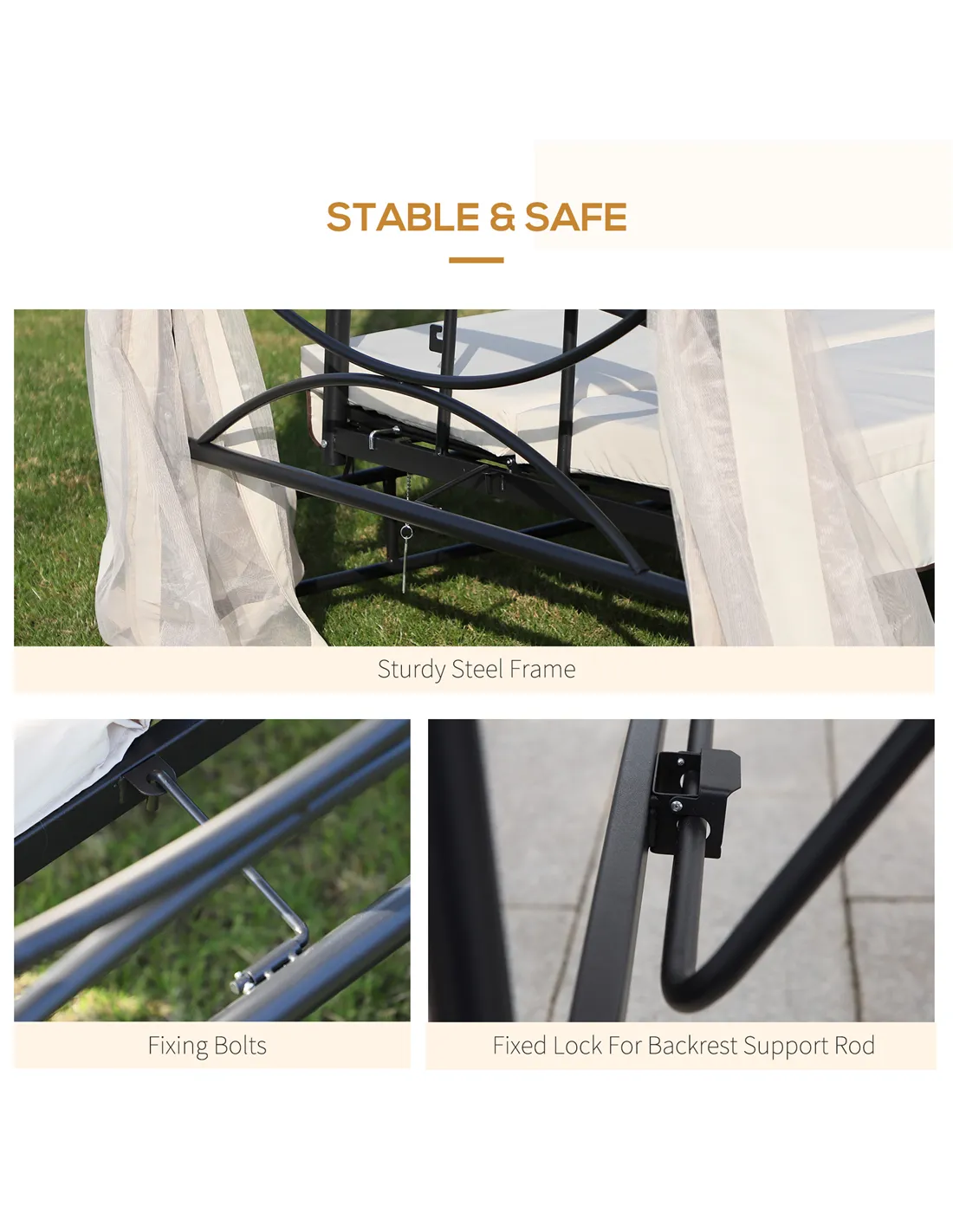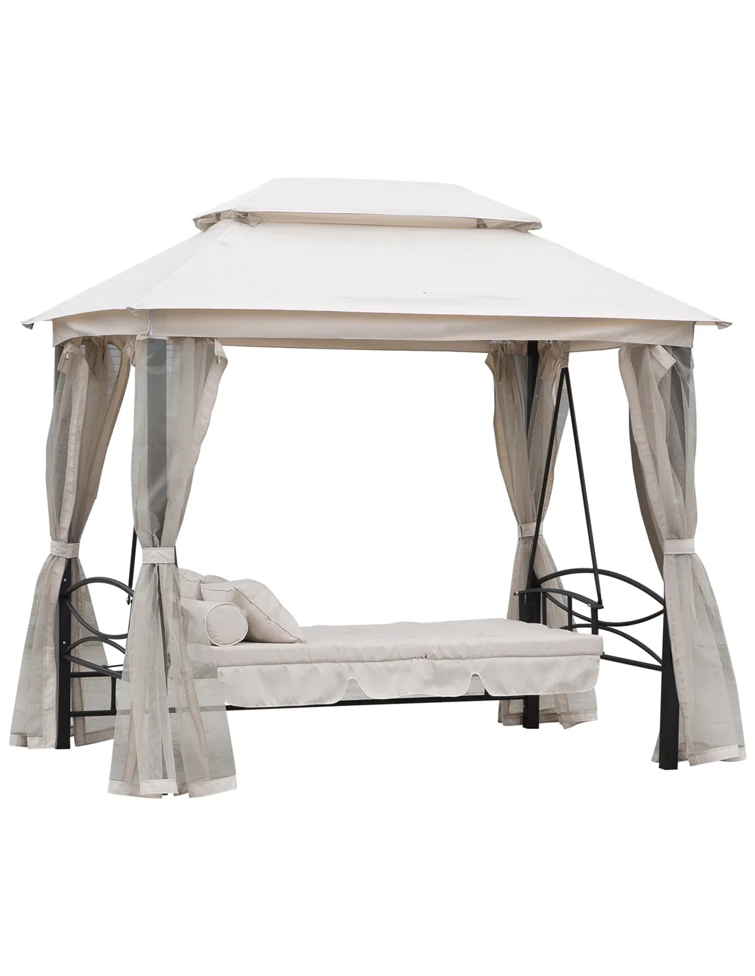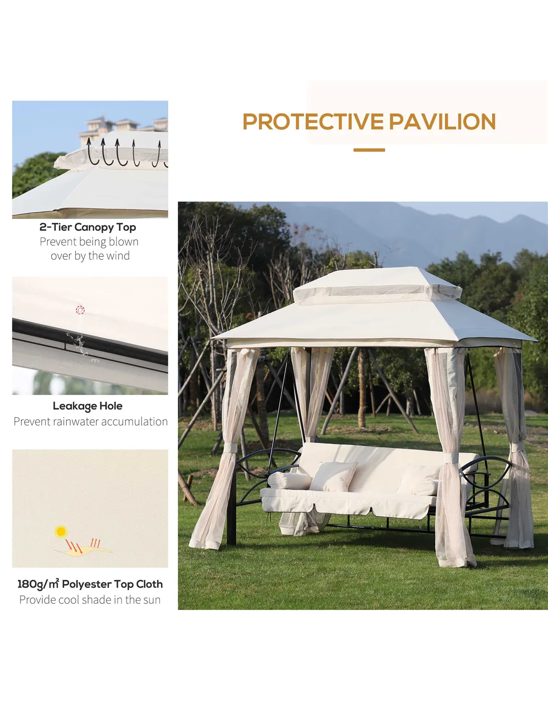 Outsunny 2-in-1 Convertible Gazebo Swing Chair Bed W/Netting, 245Lx165Wx243H cm-Beige/Black