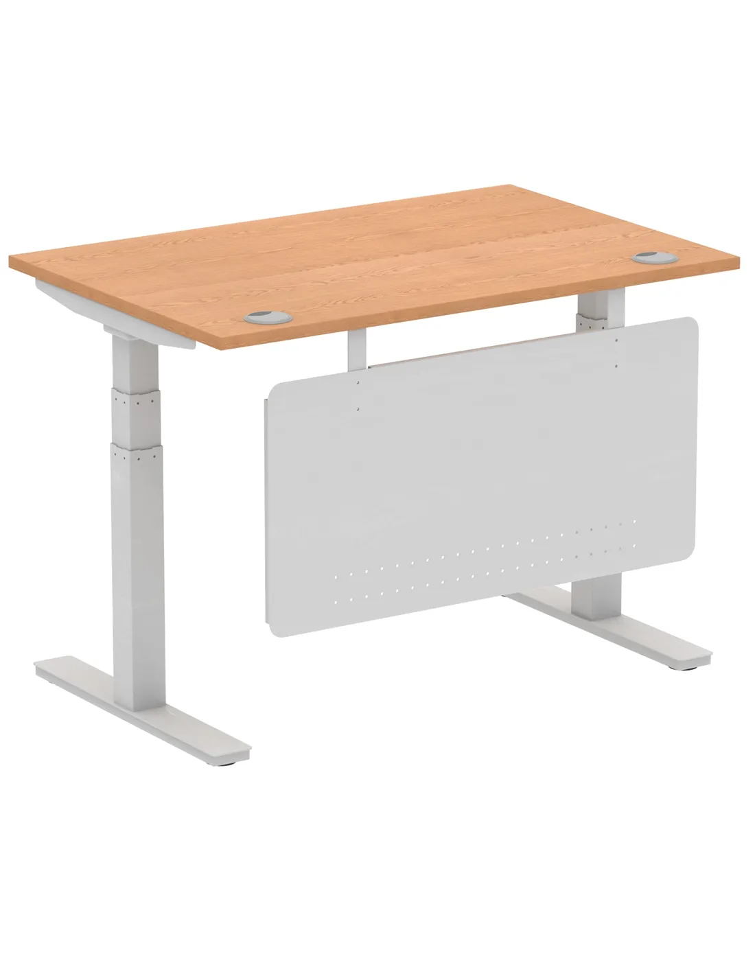 Dynamic Air Modesty 1200 x 800mm Height Adjustable Office Desk Oak Top Cable Ports Modesty Panel