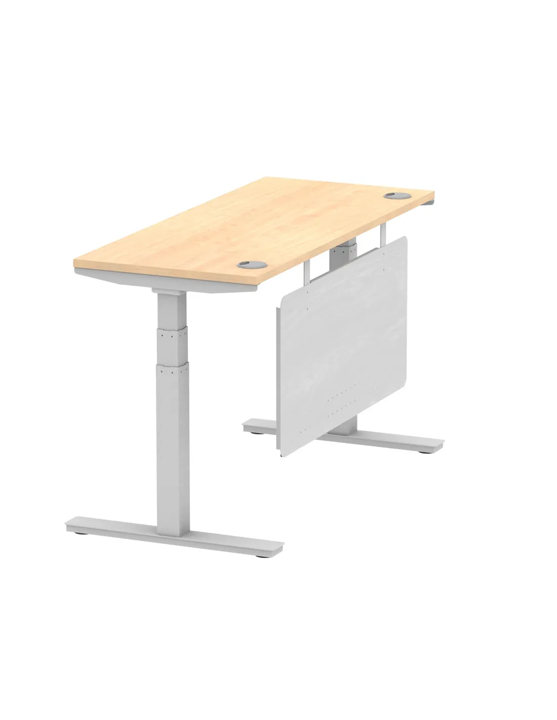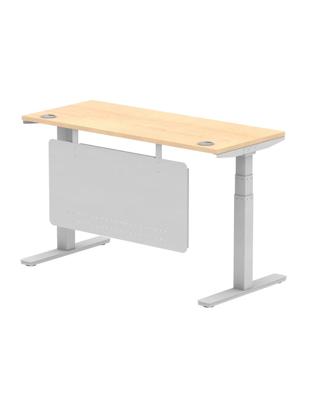 Dynamic Air Modesty 1400 x 600mm Height Adjustable Office Desk Maple Top Cable Ports Modesty Panel