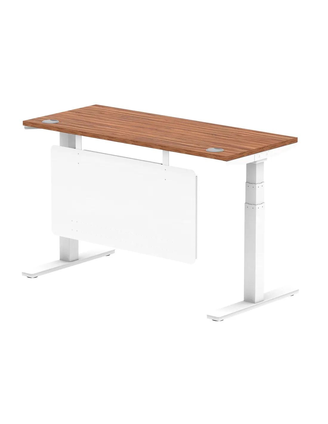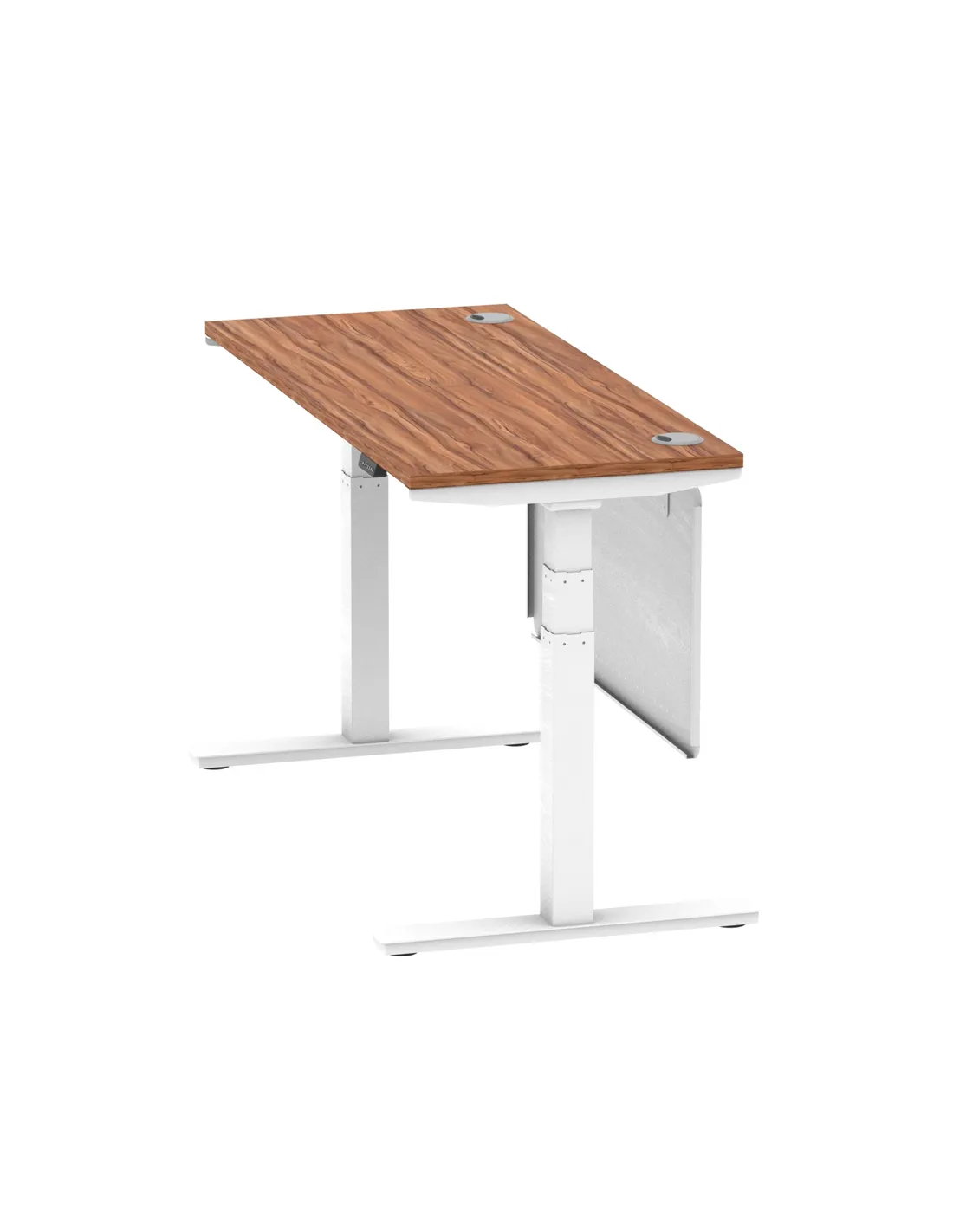 Dynamic Air Modesty 1400 x 600mm Height Adjustable Office Desk Walnut Top Cable Ports Modesty Panel
