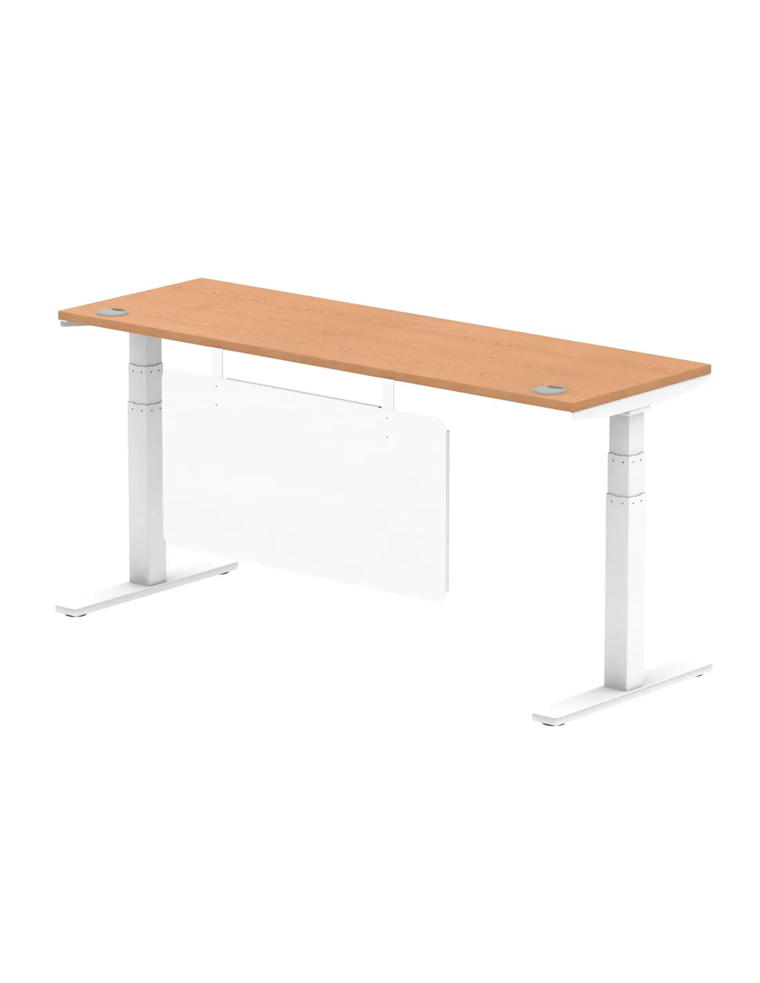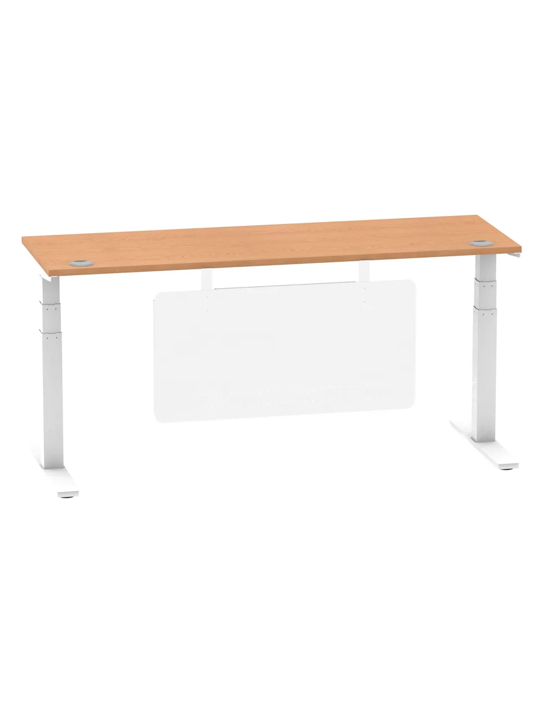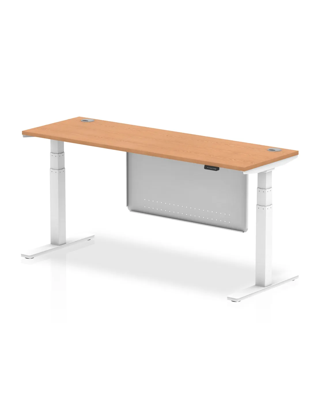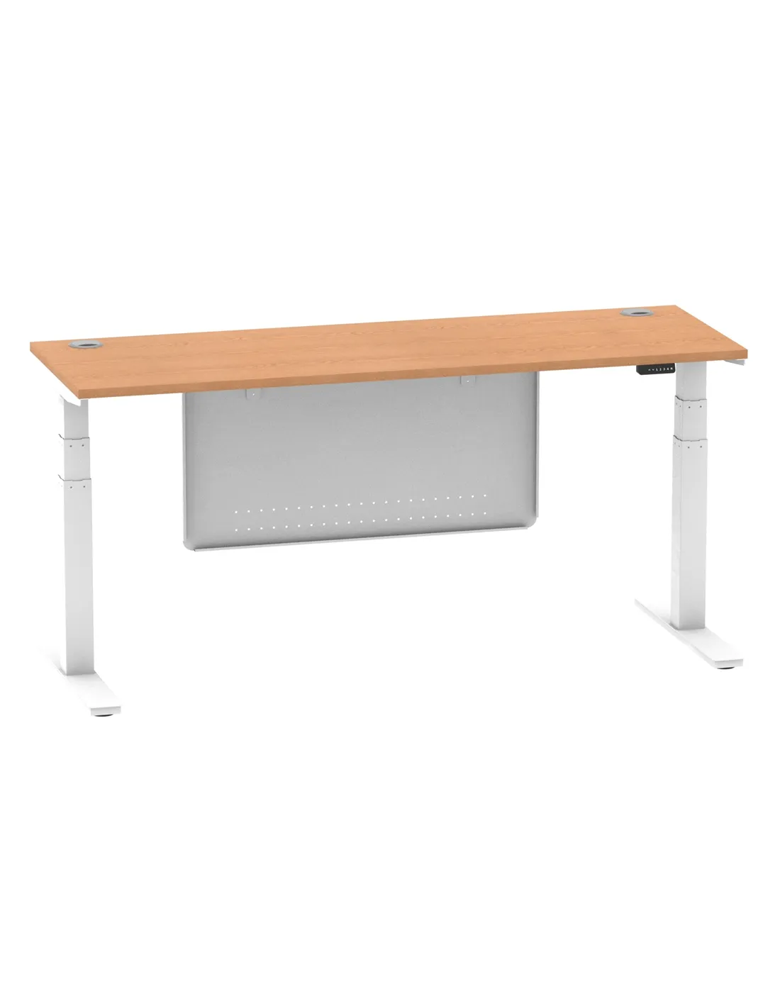 Dynamic Air Modesty 1800 x 600mm Height Adjustable Office Desk Oak Top Cable Ports Modesty Panel