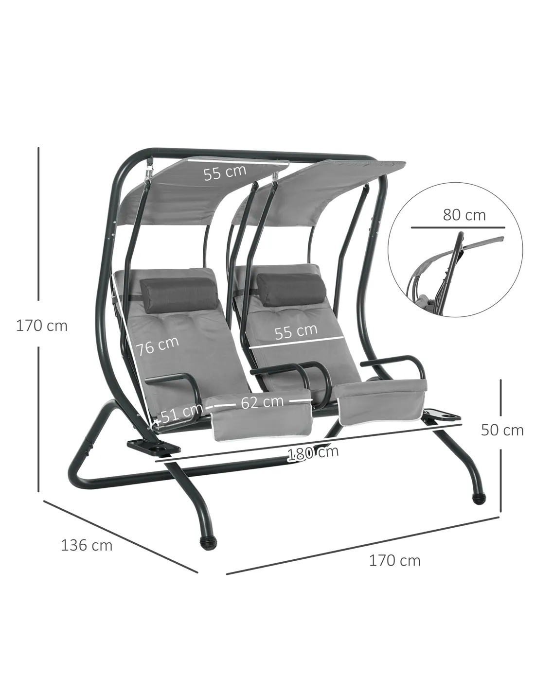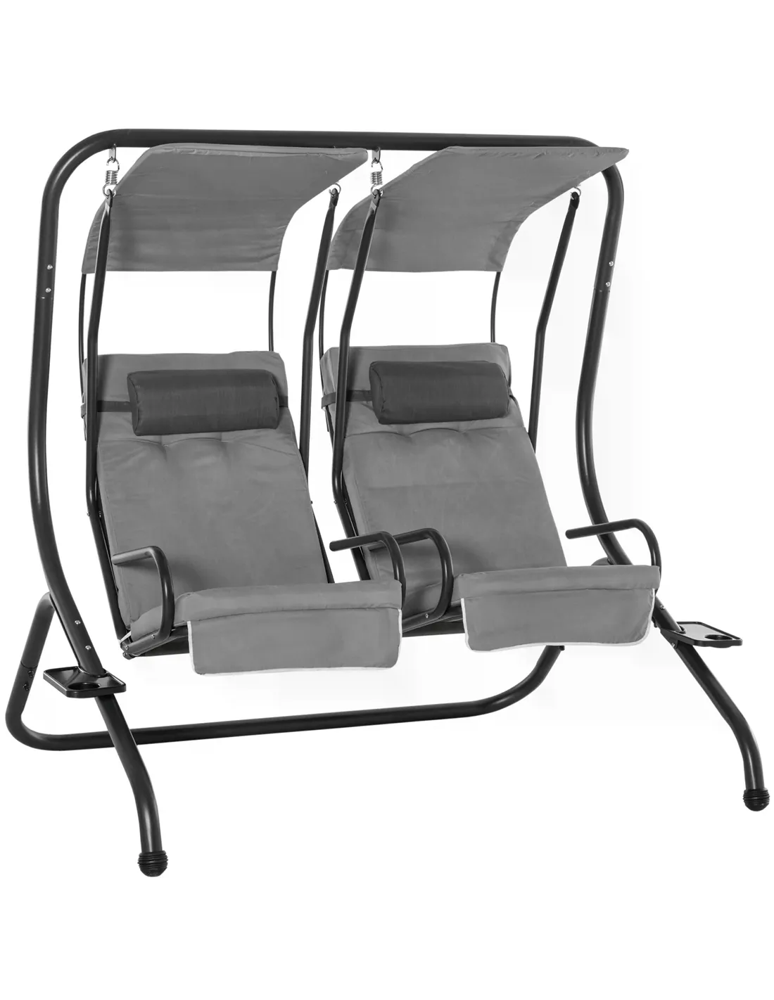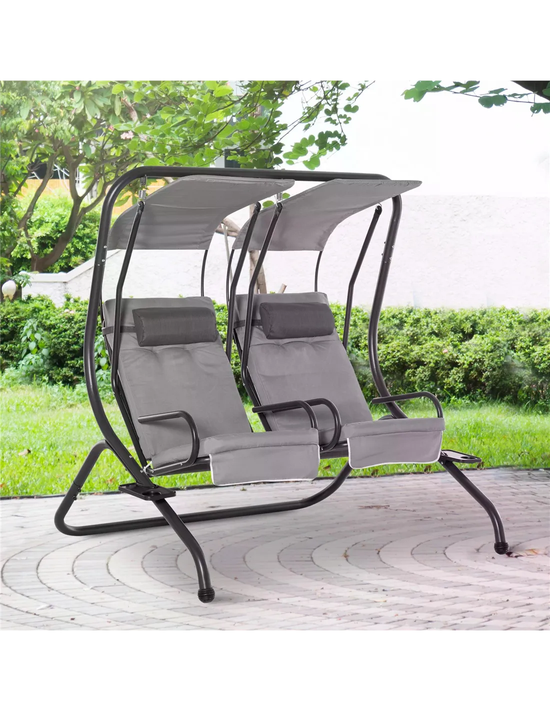 Outsunny Canopy Swing 2 Separate Relax Chairs w/ Handrails and Removable Canopy Grey