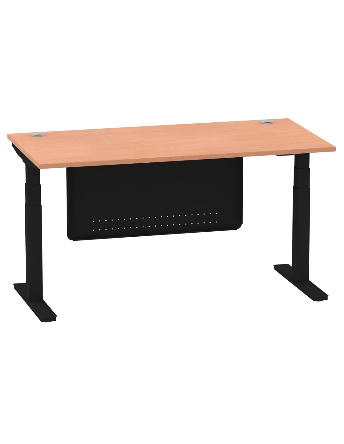 Dynamic Air Modesty 1600 x 800mm Height Adjustable Office Desk Beech Top Cable Ports Modesty Panel