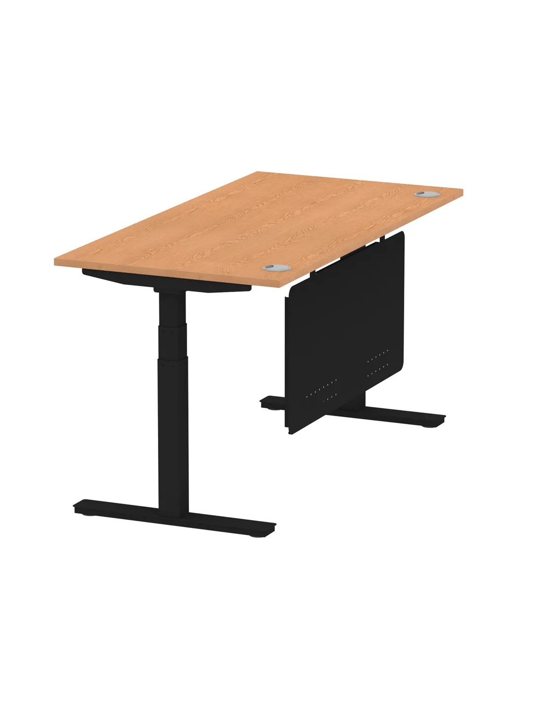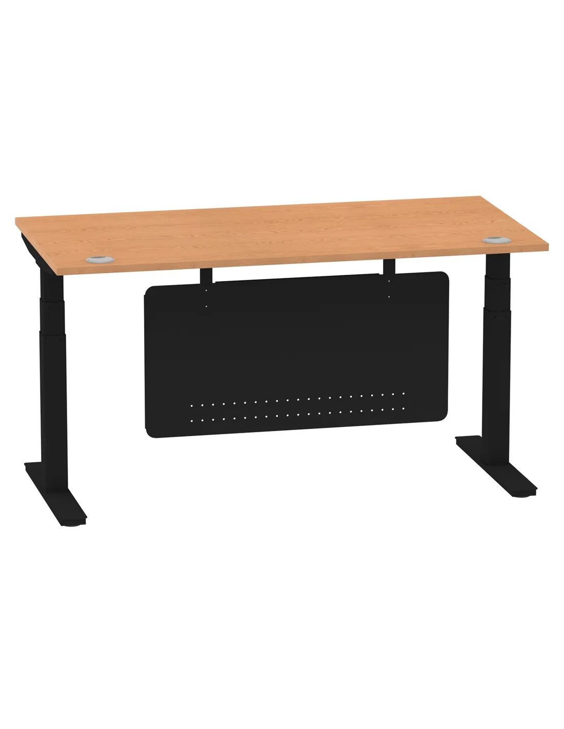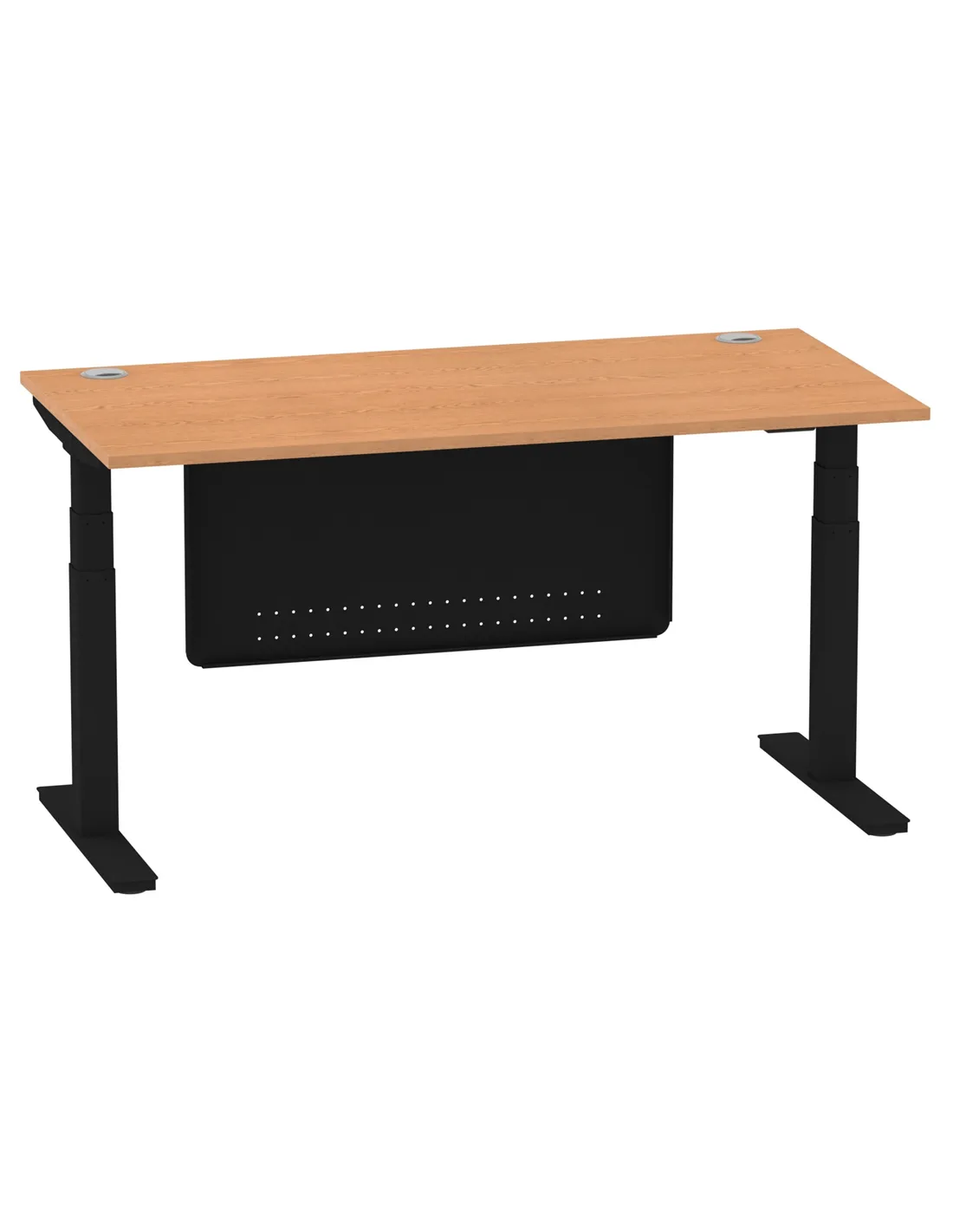Dynamic Air Modesty 1600 x 800mm Height Adjustable Office Desk Oak Top Cable Ports Modesty Panel