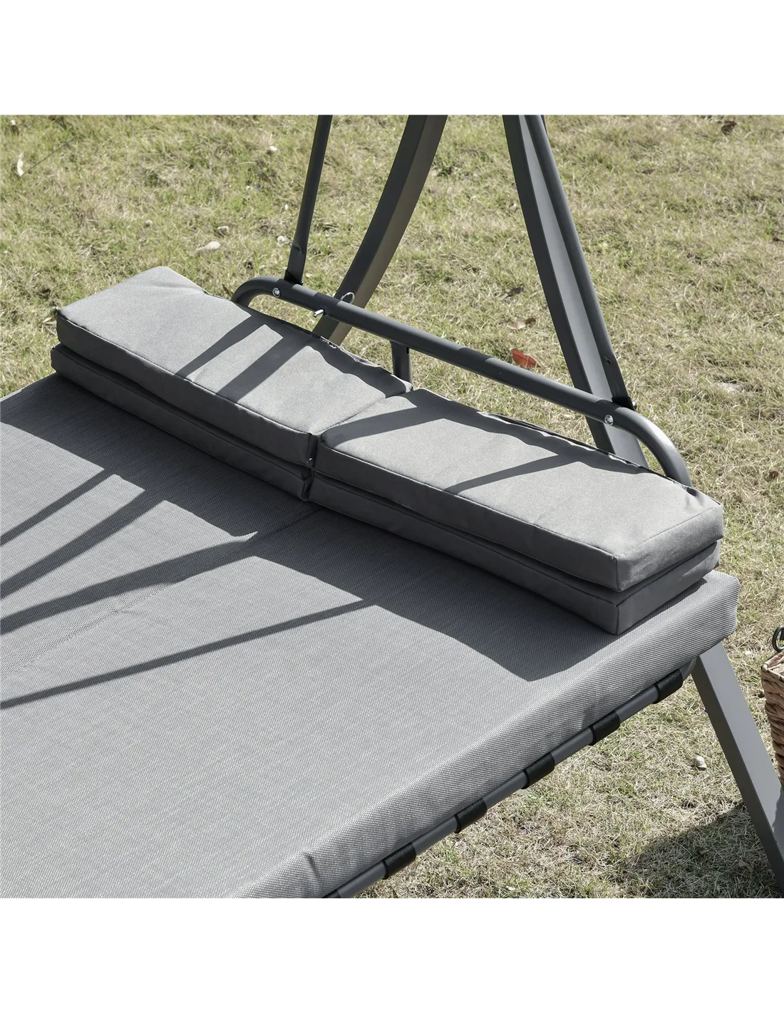 Outsunny 2-in-1 Patio 3 Seater Swing Chair Hammock w/ Cushion Adjustable Canopy Garden