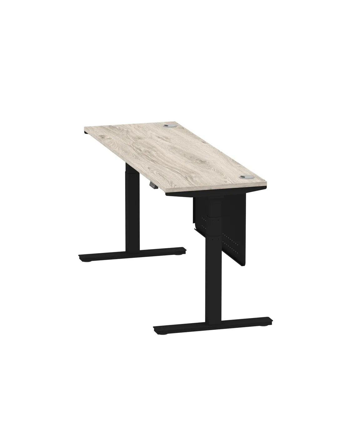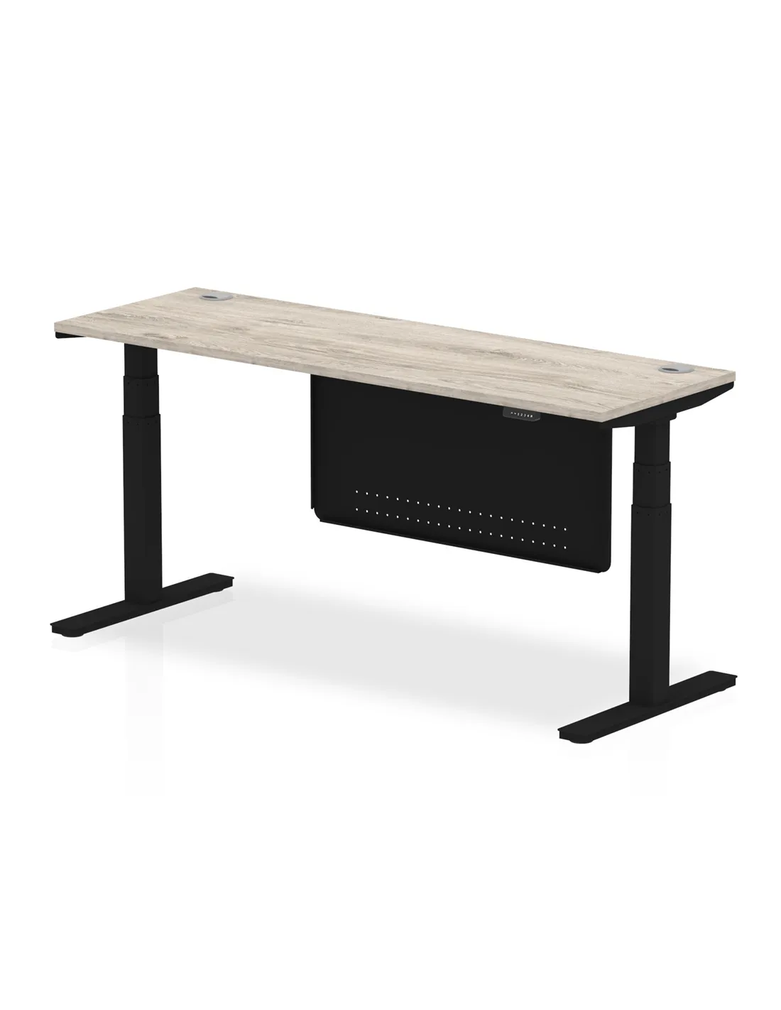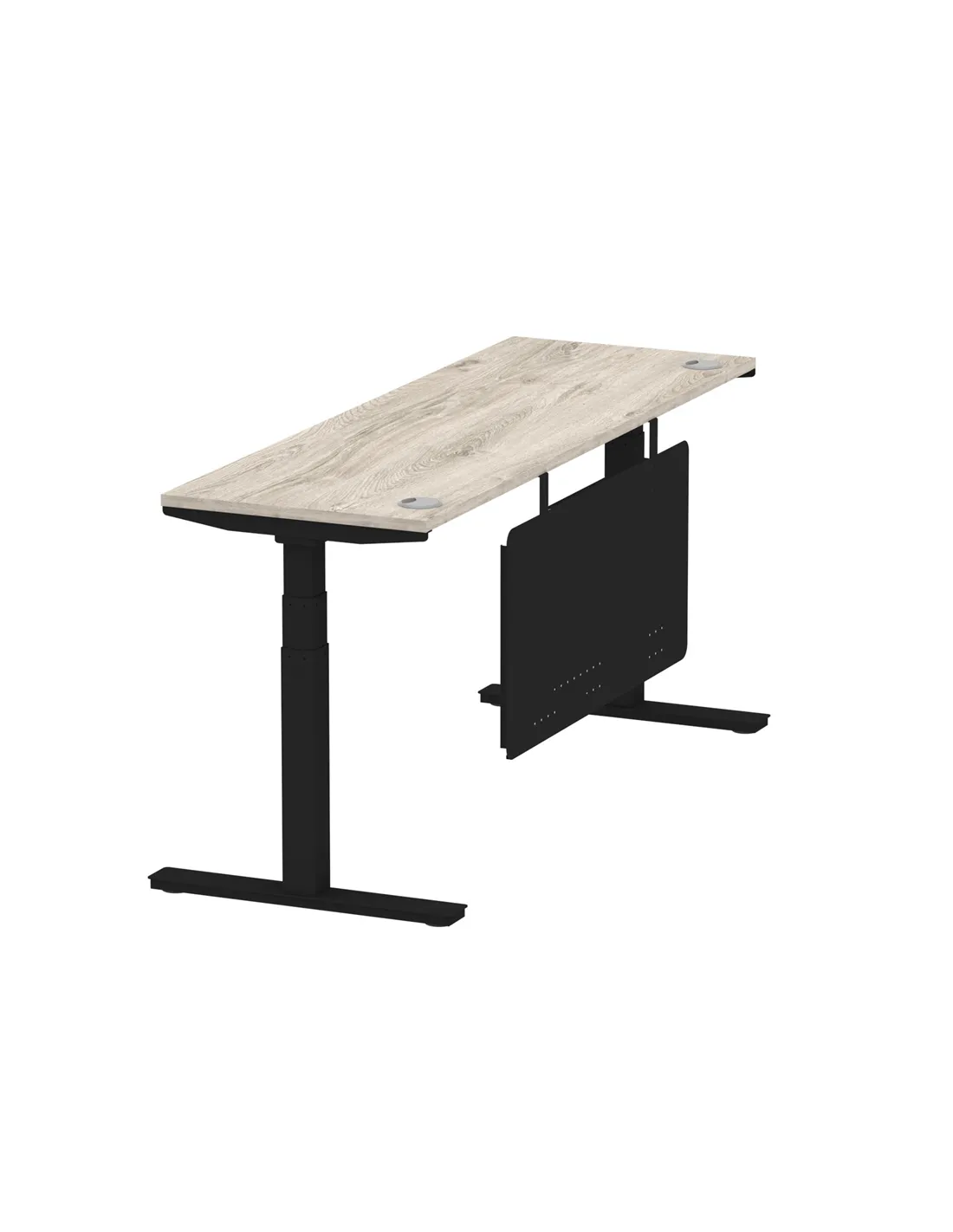 Dynamic Air Modesty 1800 x 600mm Height Adjustable Office Desk Grey Oak Top Cable Ports Modesty Panel