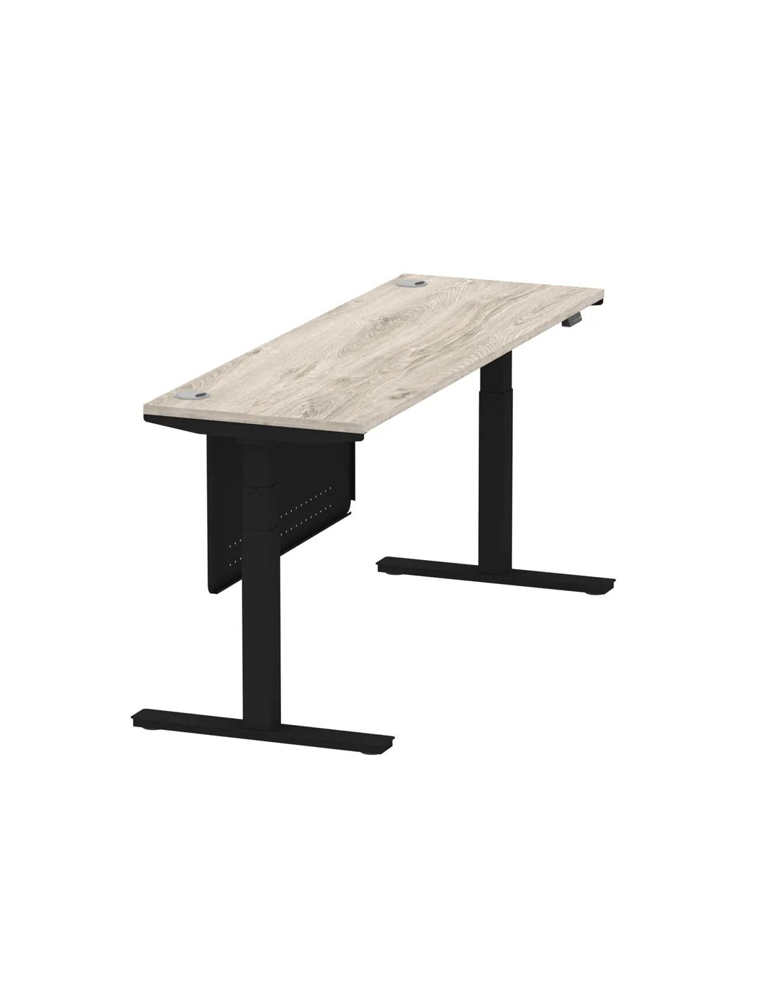 - Designed by Dynamic Office Solutions, a trusted British furniture brand since 2006, this desk offers smooth electronic dual motors and a wide height range (660-1310mm), allowing seamless transition between sitting and standing. Its sleek grey oak finish and modesty panel blend effortlessly into modern workspaces, promoting better posture and reducing sedentary health risks.