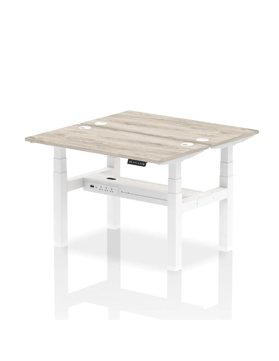Dynamic Air 1200 x 600mm Height Adjustable 2 Person Bench Desk Grey Oak Top Cable Ports