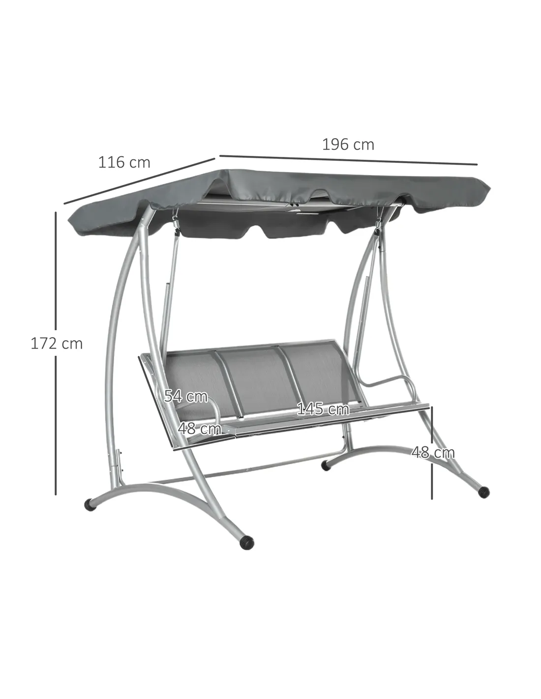 Outsunny Three Person Steel Outdoor Porch Swing Chair Bench w/ Canopy Cover Grey