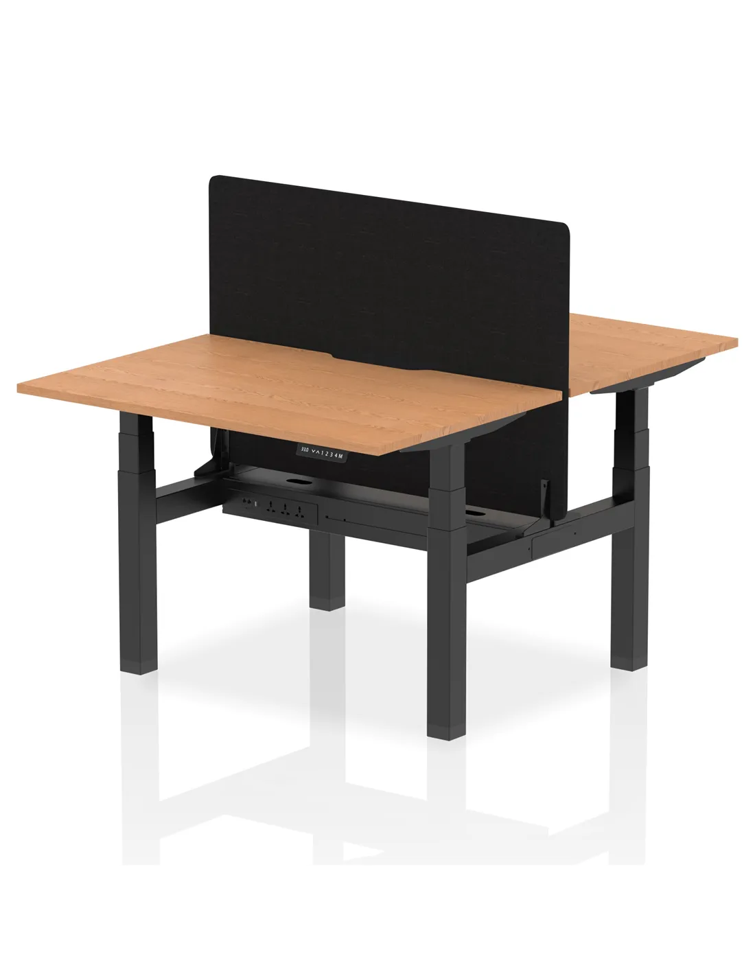 Dynamic Air 1200 x 800mm Height Adjustable 2 Person Bench Desk Oak Top Scalloped Edge Screen