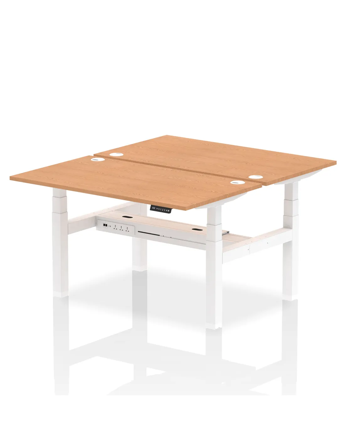 Dynamic Air 1400 x 800mm Height Adjustable 2 Person Bench Desk Oak Top Cable Ports