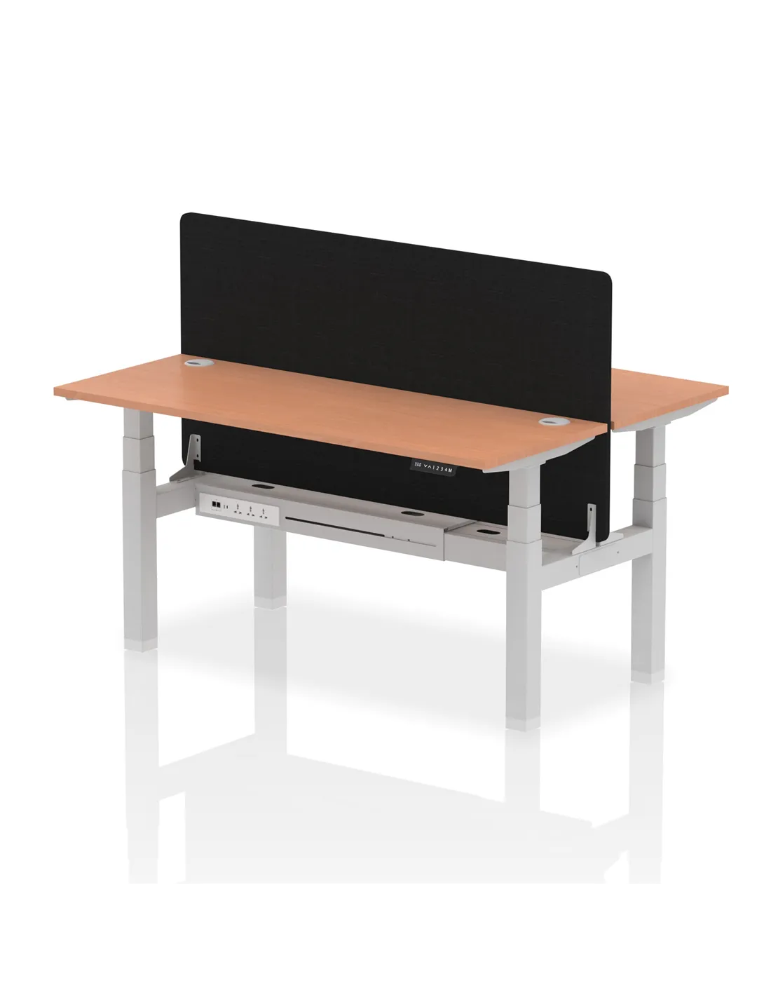 Dynamic Air 1600 x 600mm Height Adjustable 2 Person Bench Desk Beech Top Cable Ports Screen
