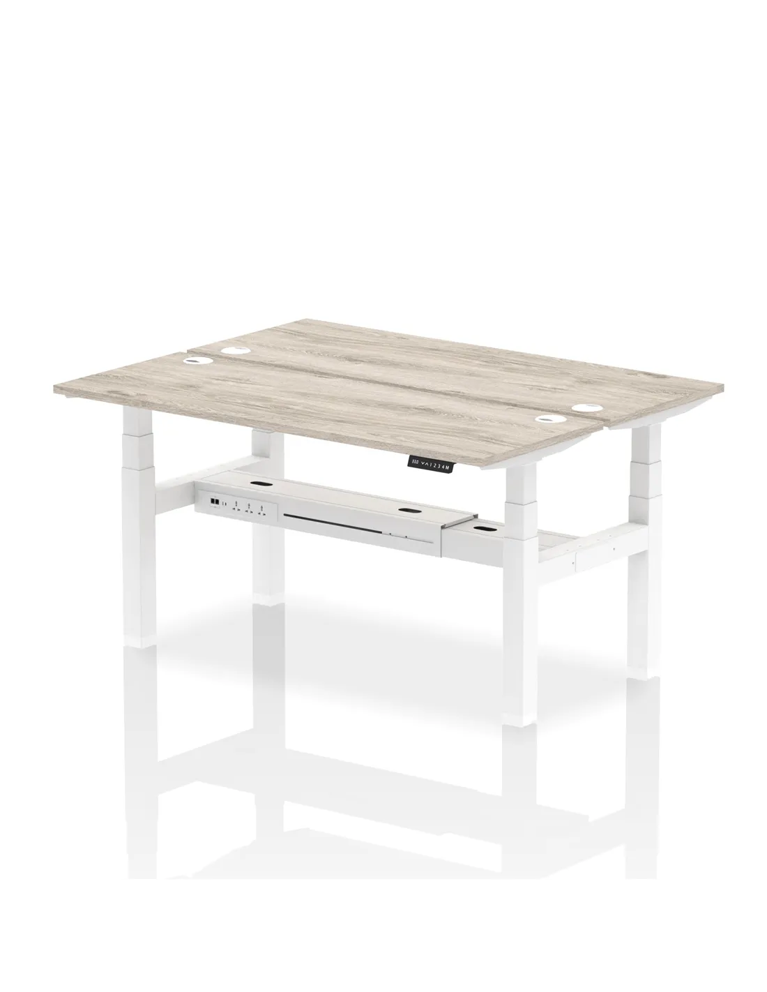Dynamic Air 1600 x 600mm Height Adjustable 2 Person Bench Desk Grey Oak Top Cable Ports