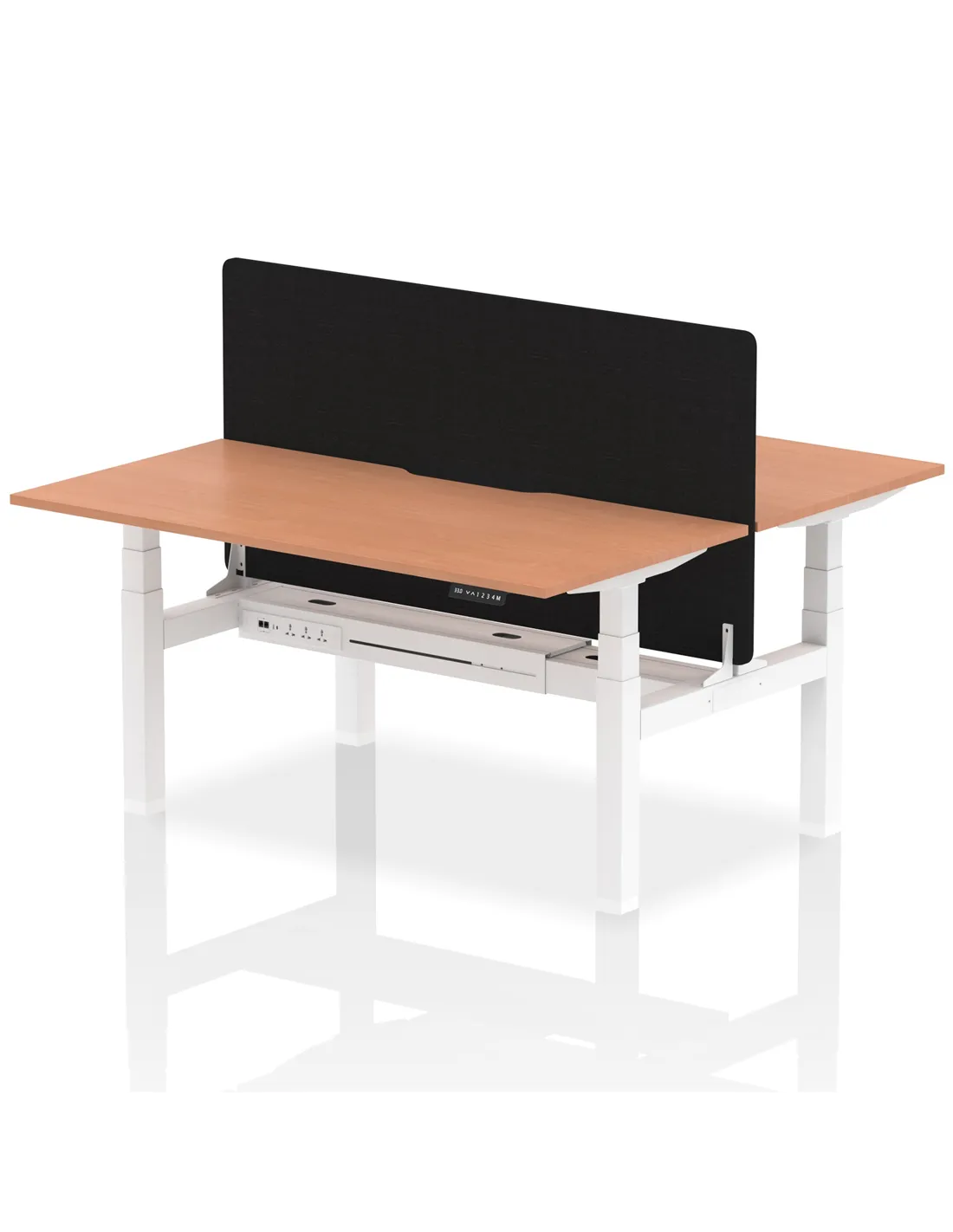 Dynamic Air 1600 x 800mm Height Adjustable 2 Person Bench Desk Beech Top Scalloped Edge Screen